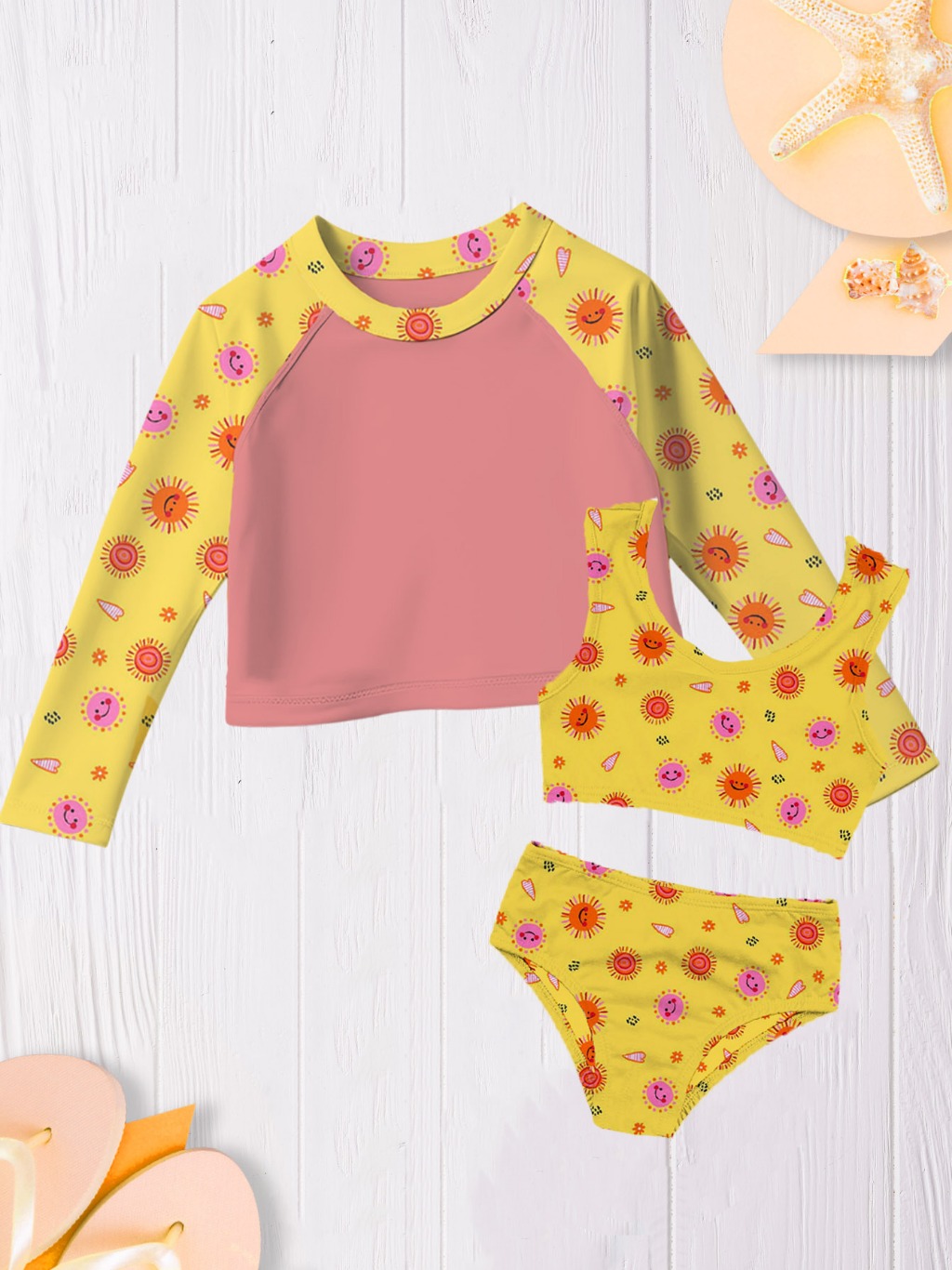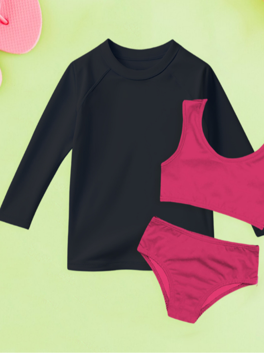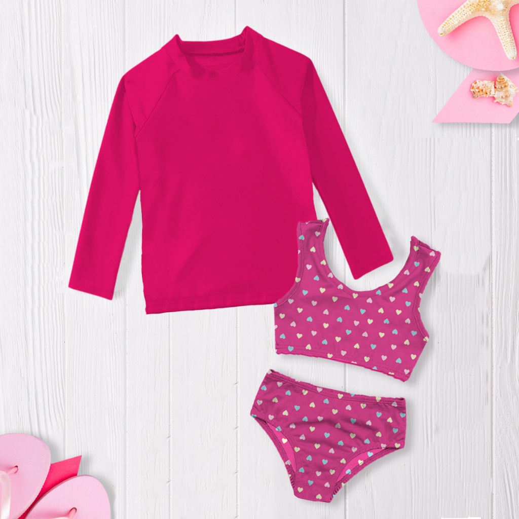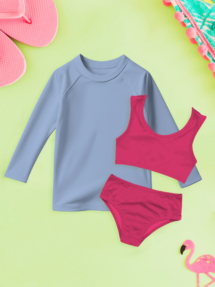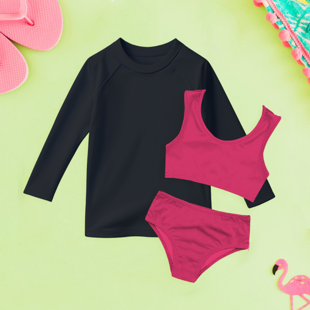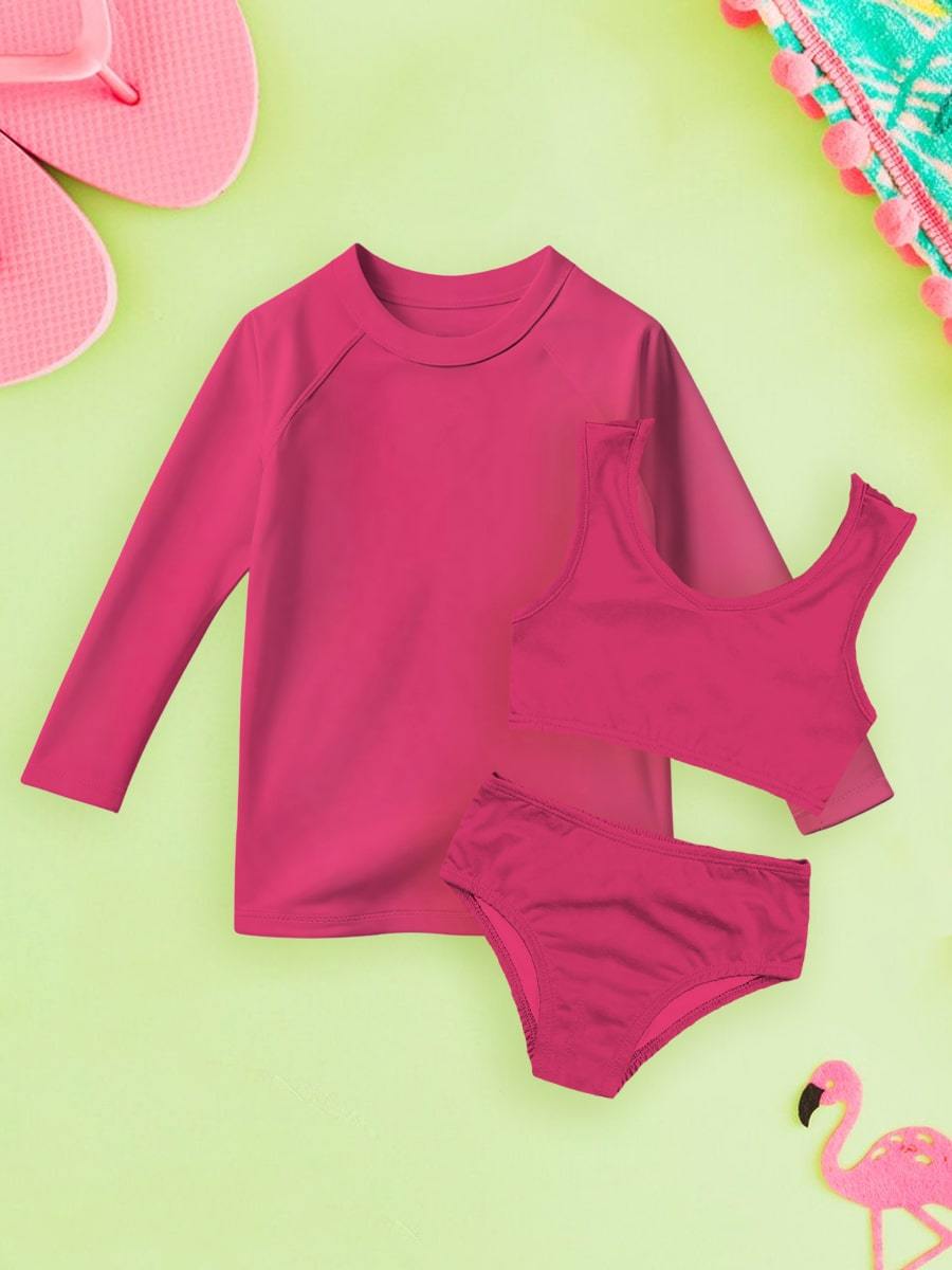 Conjunto Biquini infantil + Camiseta UV Proteção Solar UV 50 Piscina Natação para Meninas Moda Praia