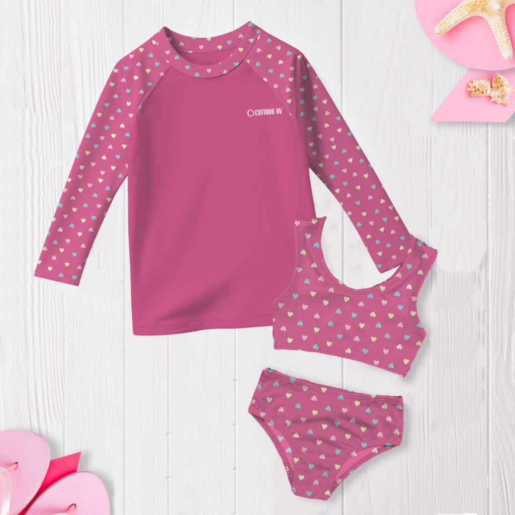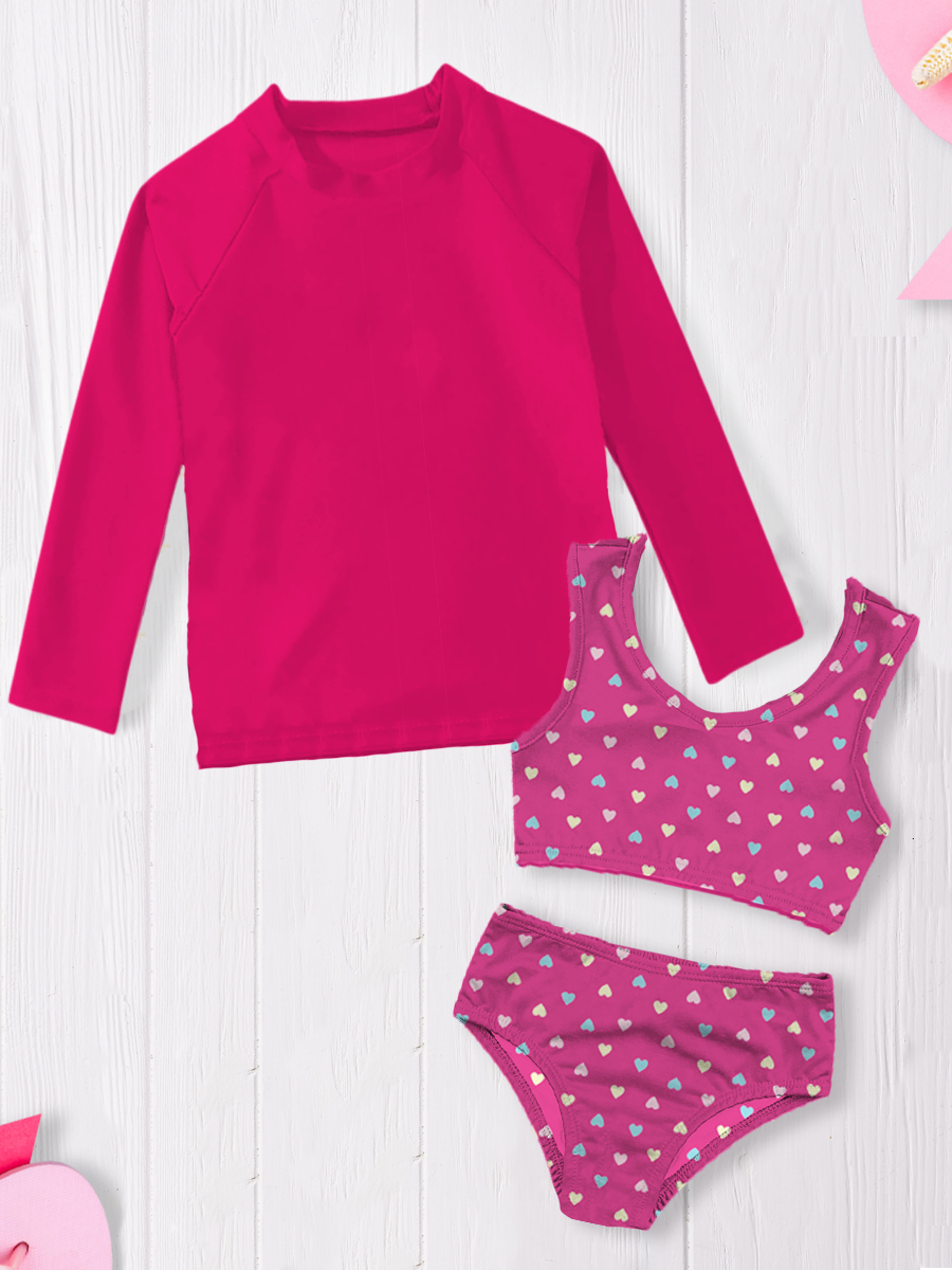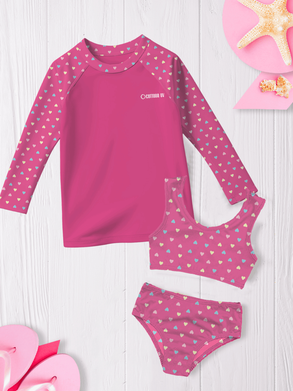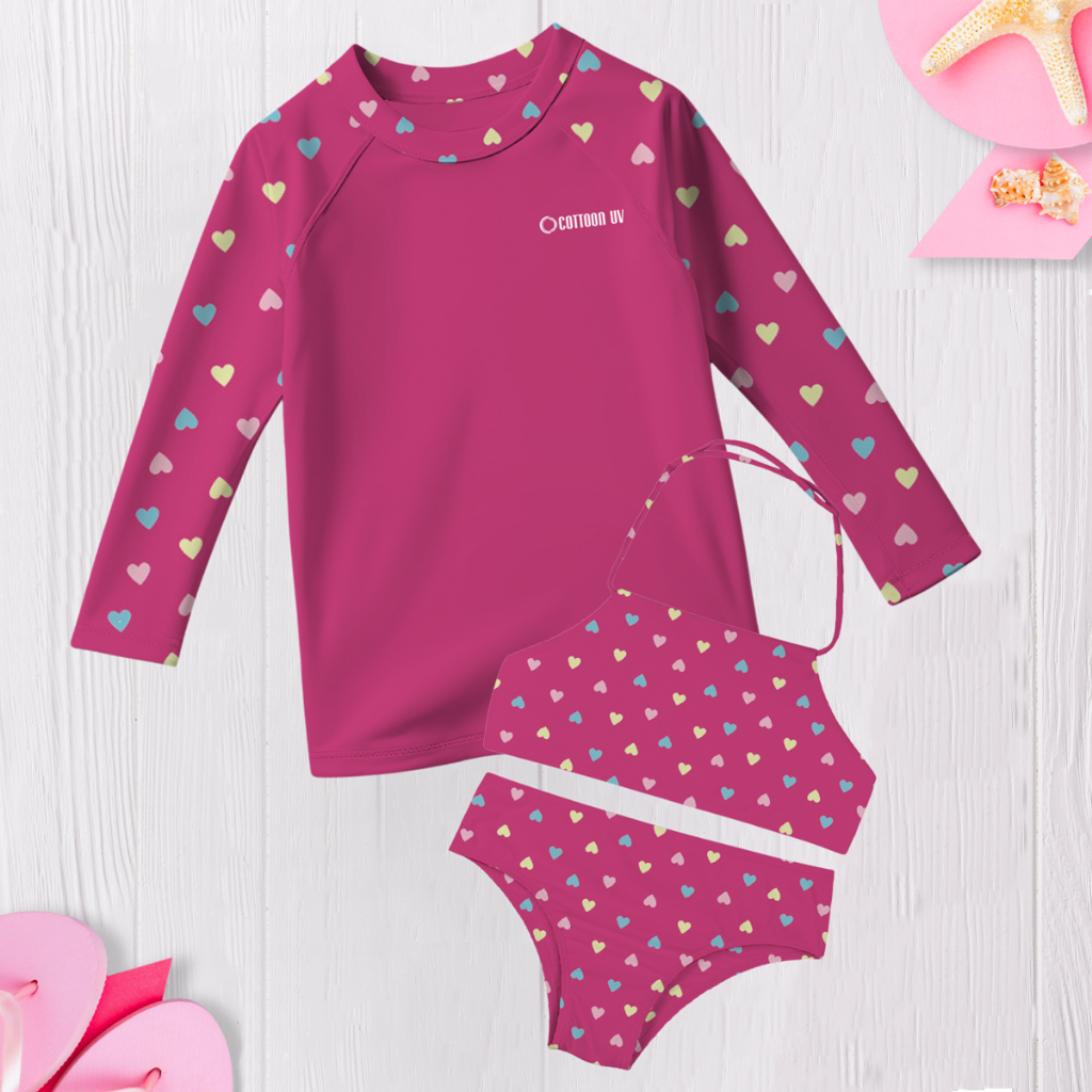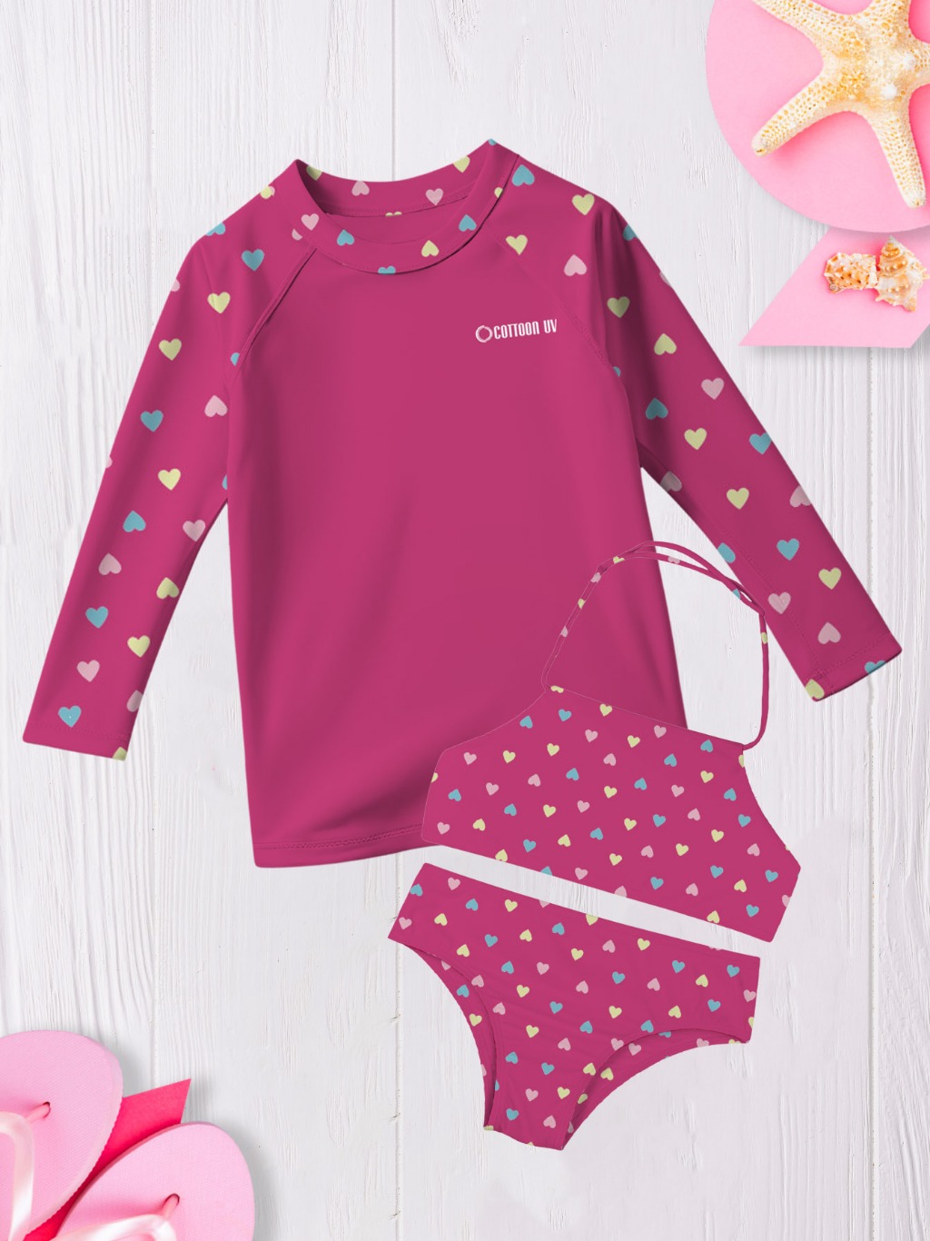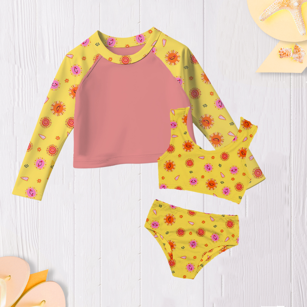 Conjunto Biquini infantil + Camiseta UV Proteção Solar UV 50 Piscina Natação para Meninas Moda Praia