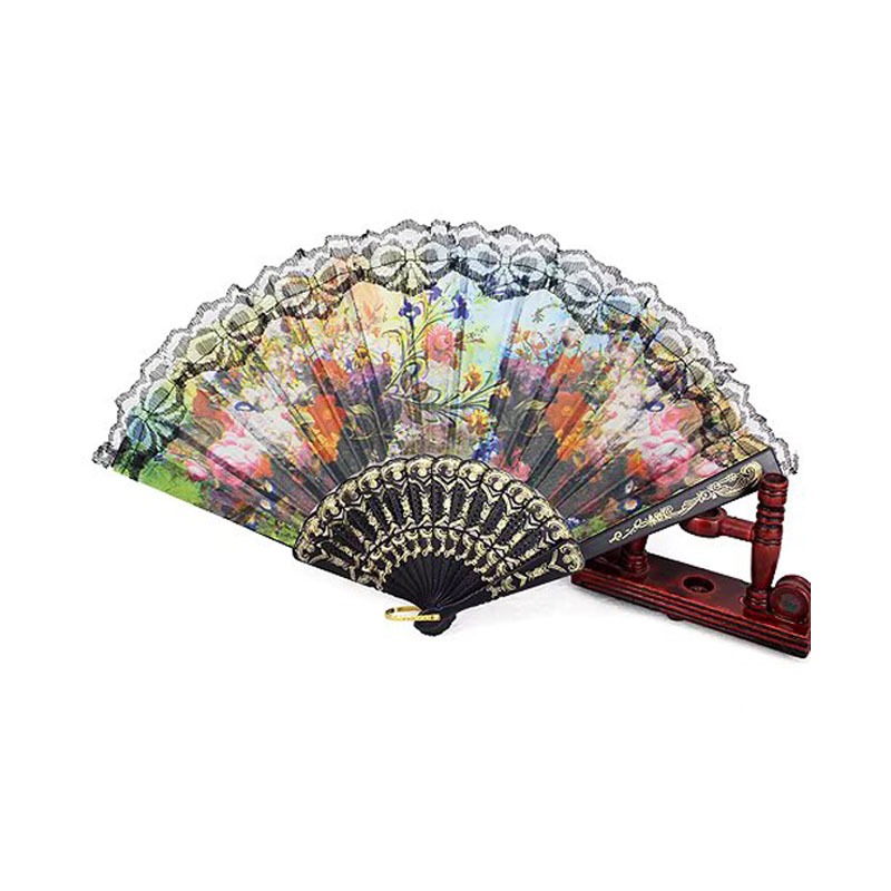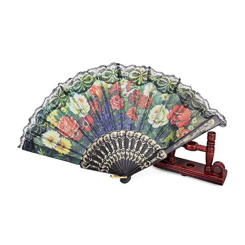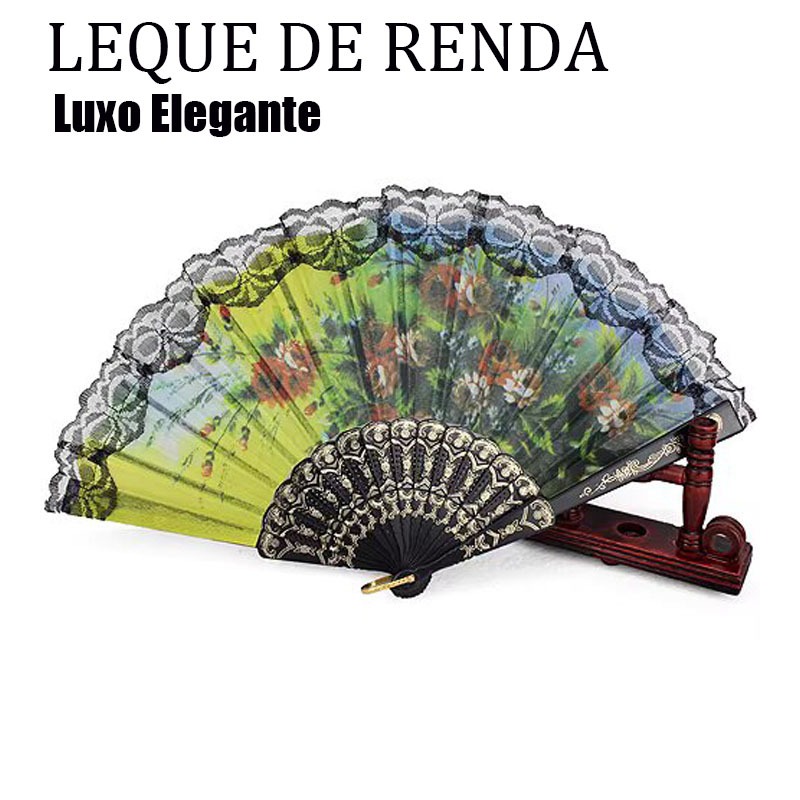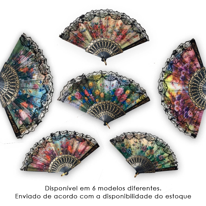 Leque De Mão Tecido Estampado Com Renda Preto Leque Cigano Tecido Floral Estampado Chique Resistente Brazilian Carnival