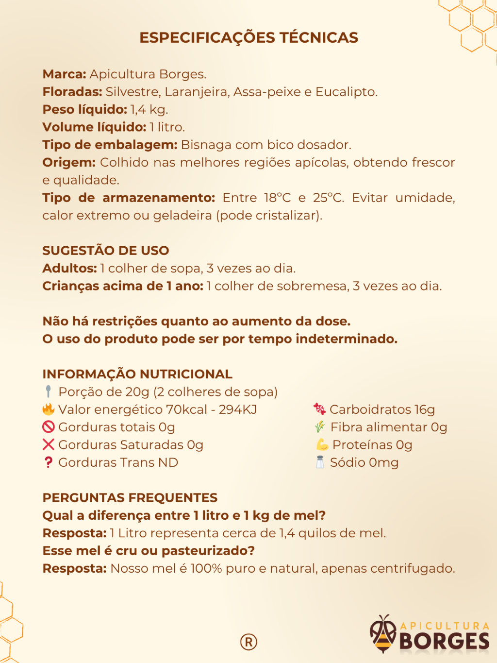 Mel Puro de Abelhas 1 Litro (1,4 kg) – Florada Silvestre / Laranjeira / Eucalipto / Assa-Peixe