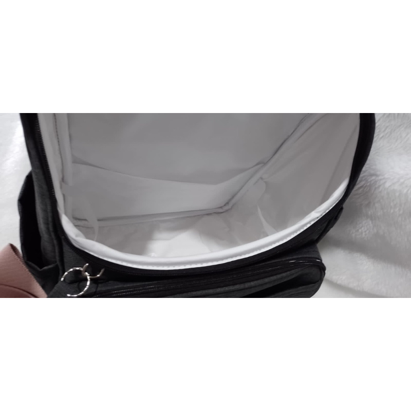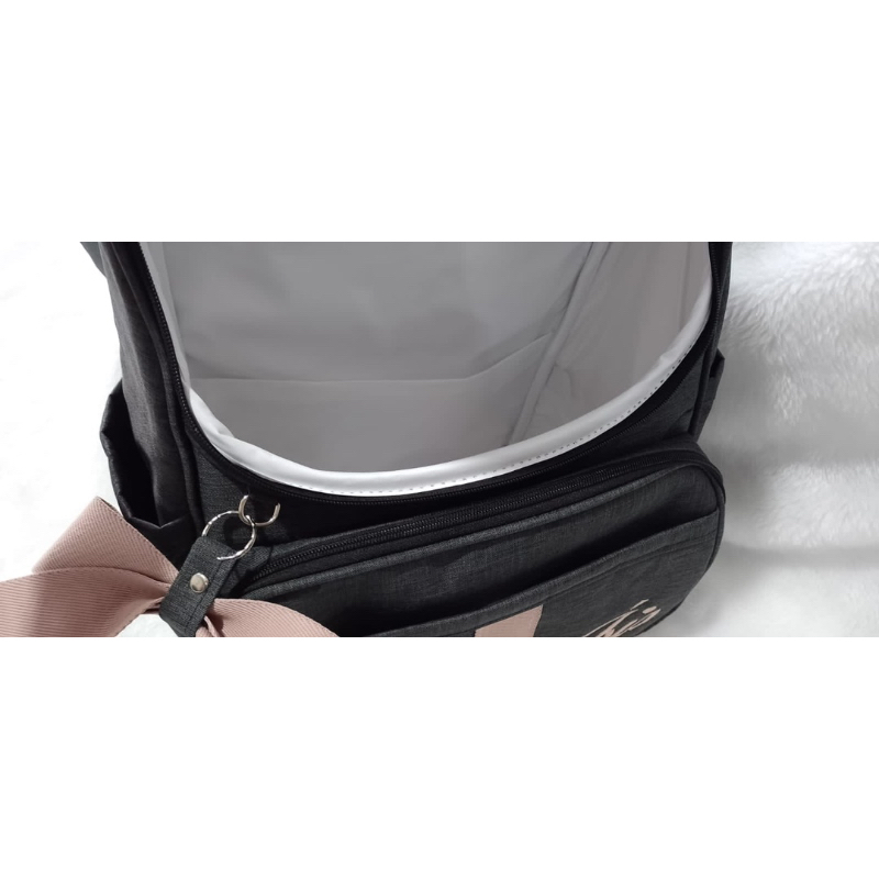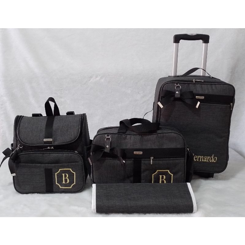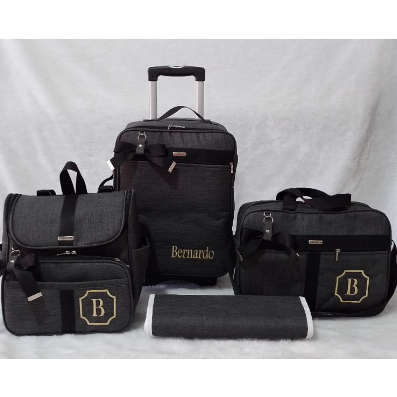 kit de bolsa de maternidade com mala de rodinha e mochila dois em um preto com faixa preta