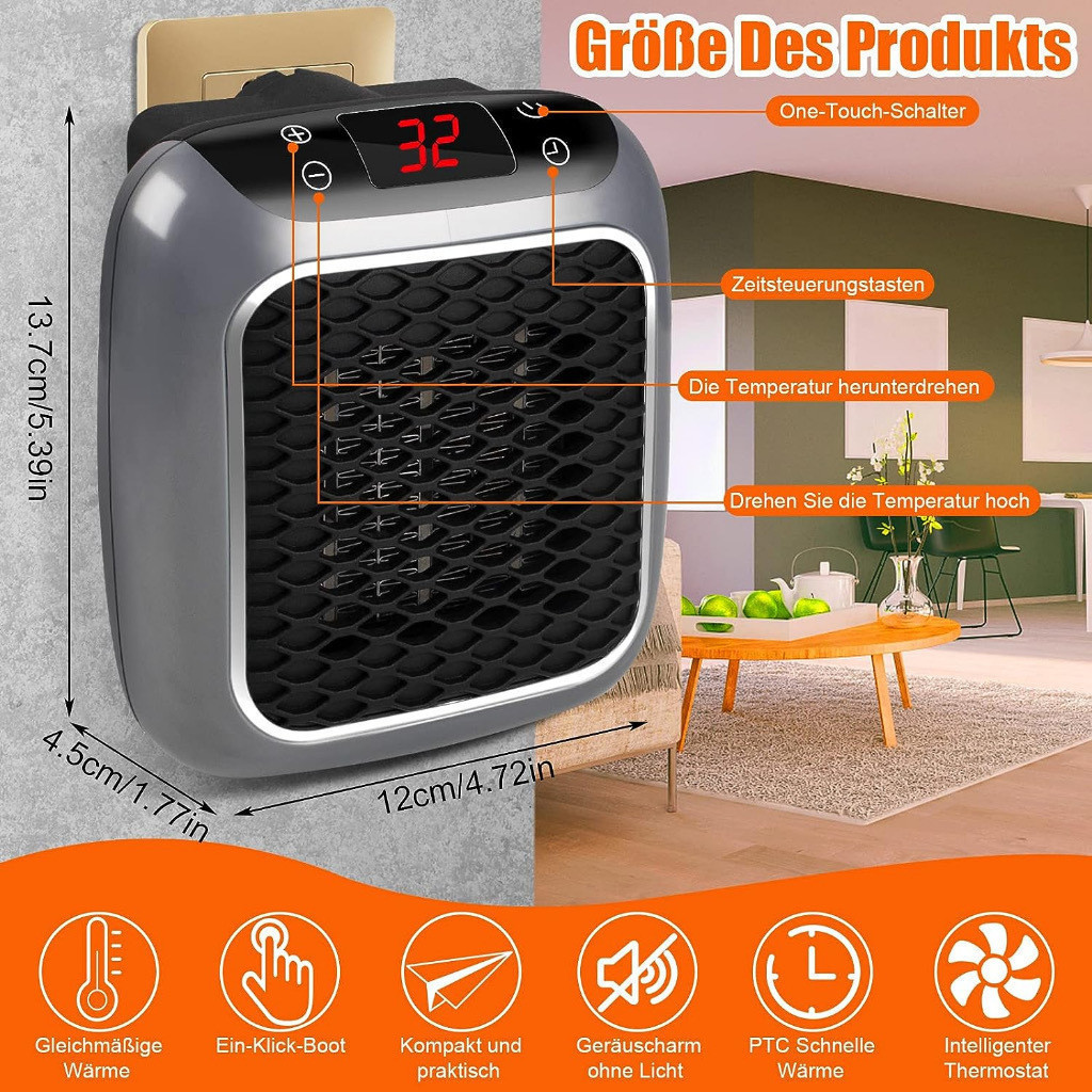 Mini Aquecedor Pequeno Portátil De Parede