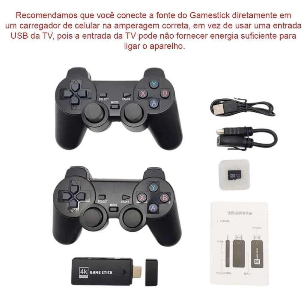 Videogame Stick 10mil 2 Controles Sem Fio Console Portatil Jogos Retro Antigo