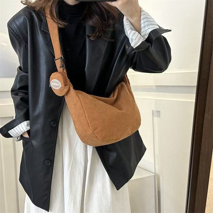 Bolsa Tiracolo Corduroy Vintage com Porta-Moedas – Estilo Coreano alex