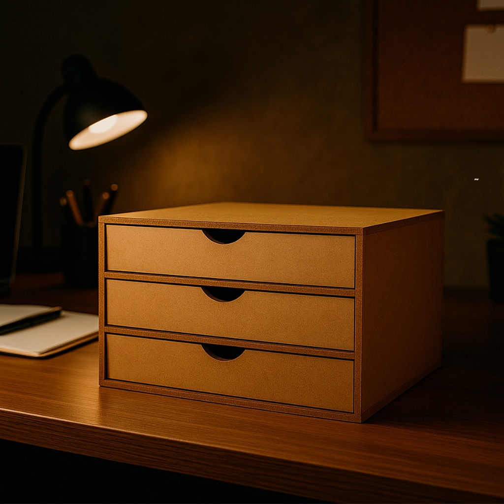 Organizador Gaveteiro MDF 3 Gavetas A4 com Suporte de Monitor Preto Office