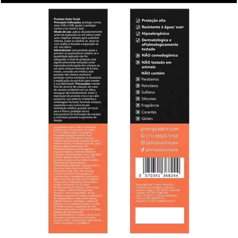 PRINCIPIA, Protetor Solar Facial PS-01 Fps 40, 40ml