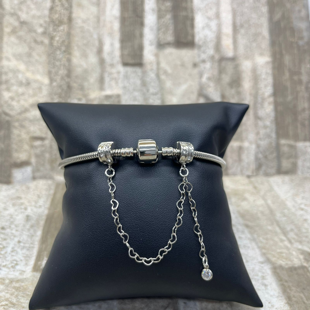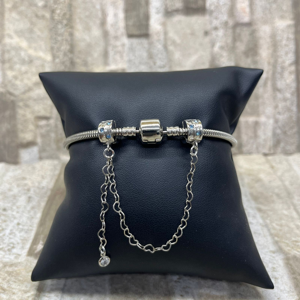 Trava de segurança com zirconia/ strass corrente de coração/ cores/ azul/ preto/ cristal/ para pulseira
