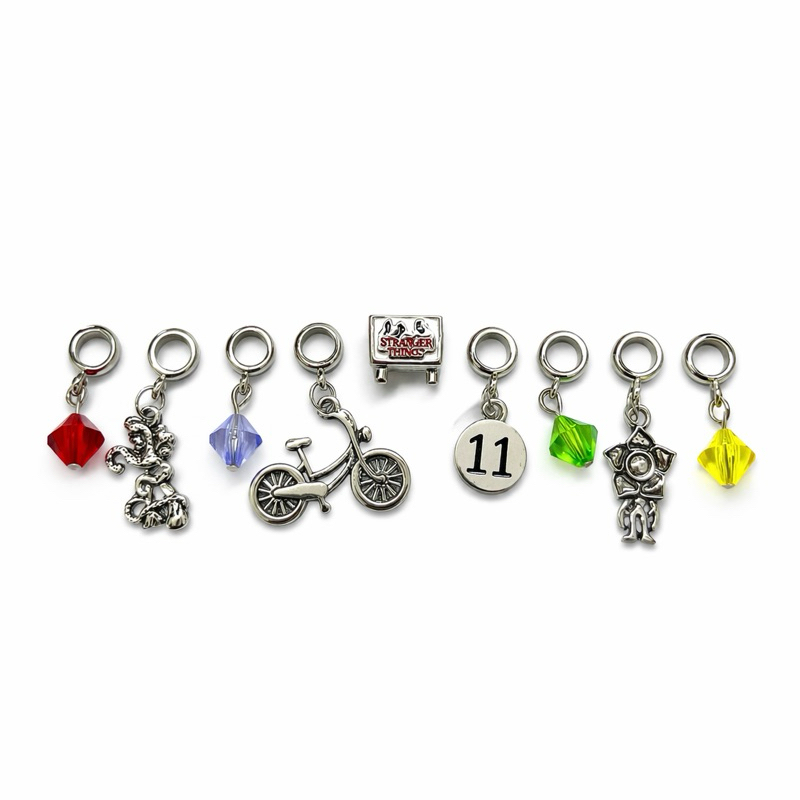 Berloque stranger things/ série/ dermogorgon/ onze/ bicicleta/ pingentes banhados