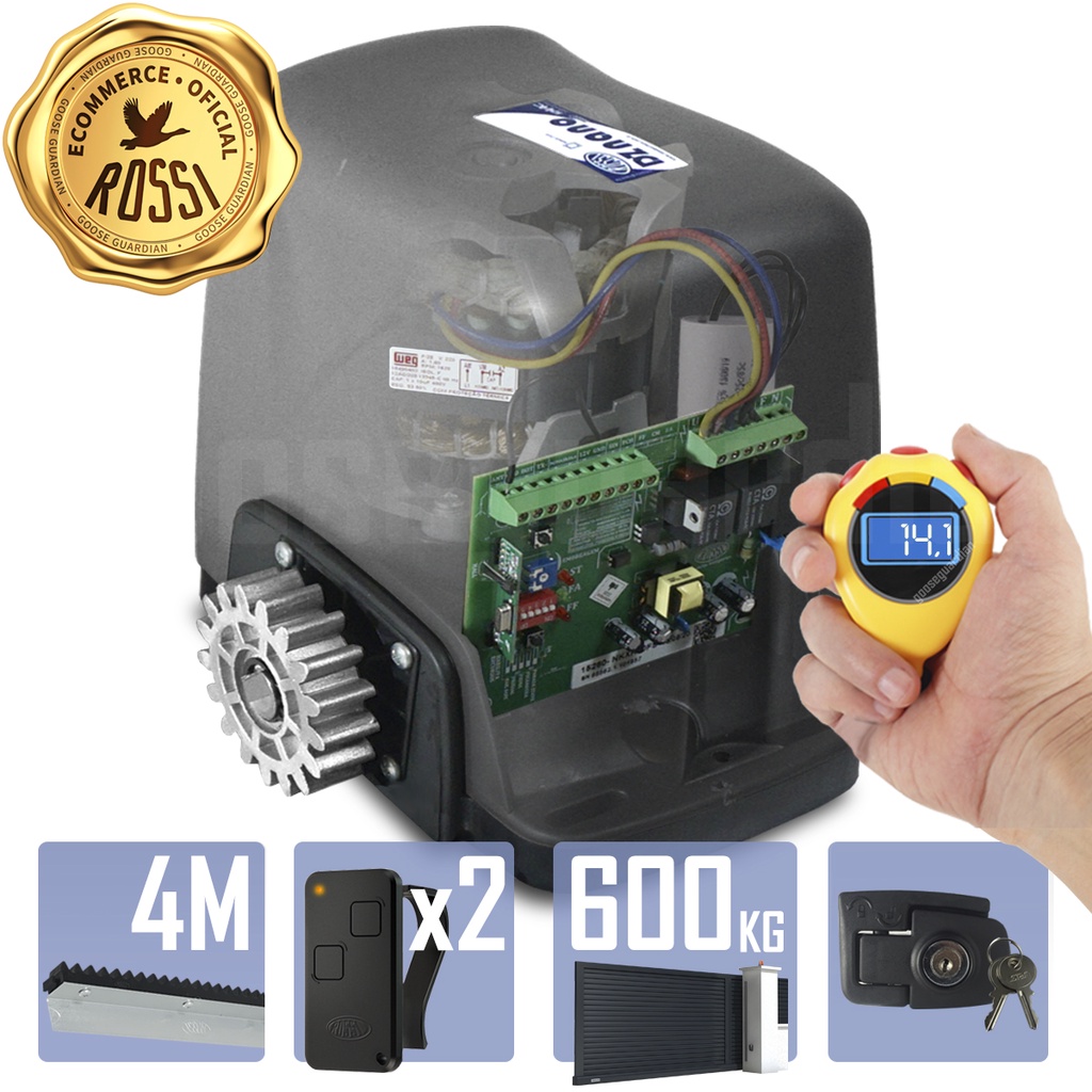 Kit 1 Motor Rossi Dz Nano Turbo 4m Crem 2 Control Portão 600kg