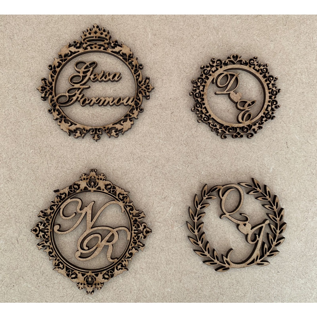15 Un 6 cm - Aplique Brazão Em Mdf Cru Personalizado Com Iniciais Para Casamentos e Festas