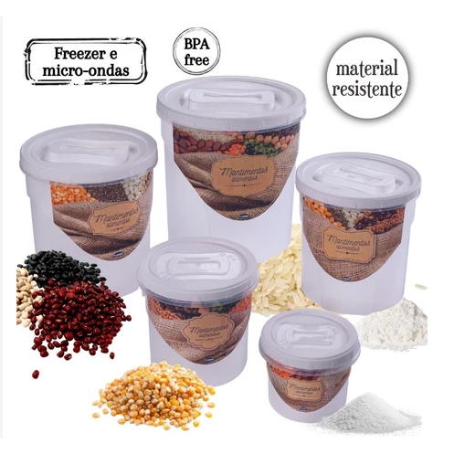 Mantimento 5 peças, conjunto de Mantimento de plástico,jogo pote mantimento promoção -Cozinha REF 58