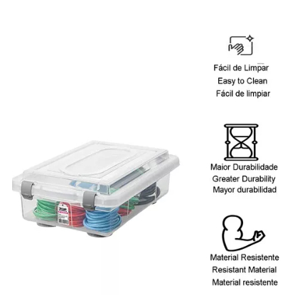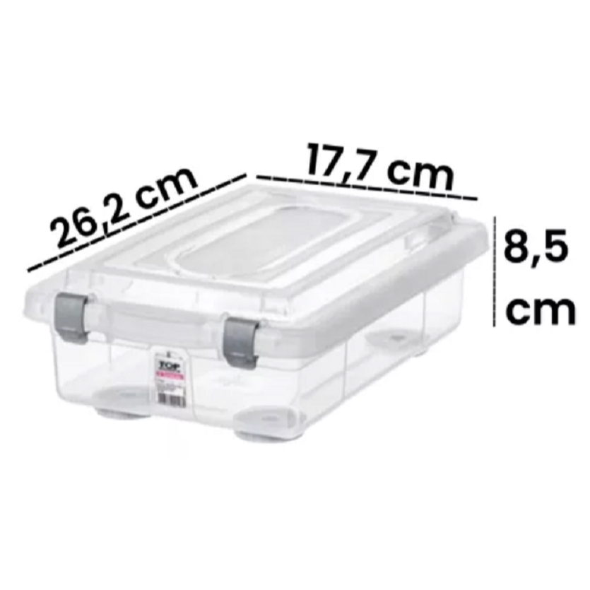 Caixa Organizadora Top Stok Baixo 2,3 Litros Cristal Transparente Casa Organizada
