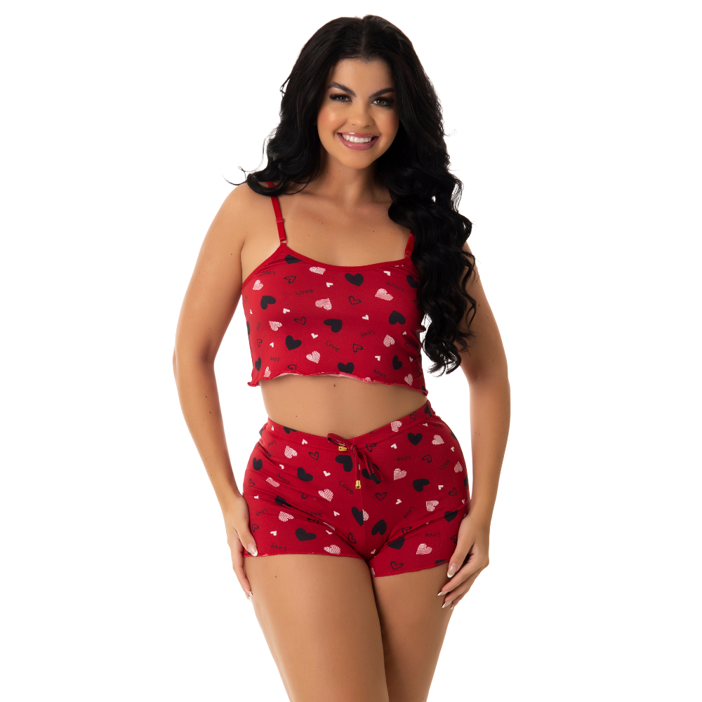 Baby Doll Short e Blusinha de Alcinha Pijama Microfibra Lingerie Feminina