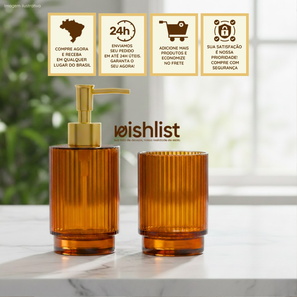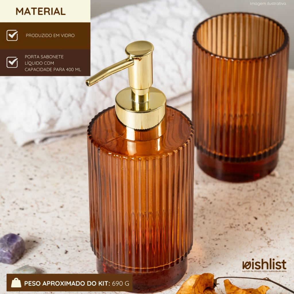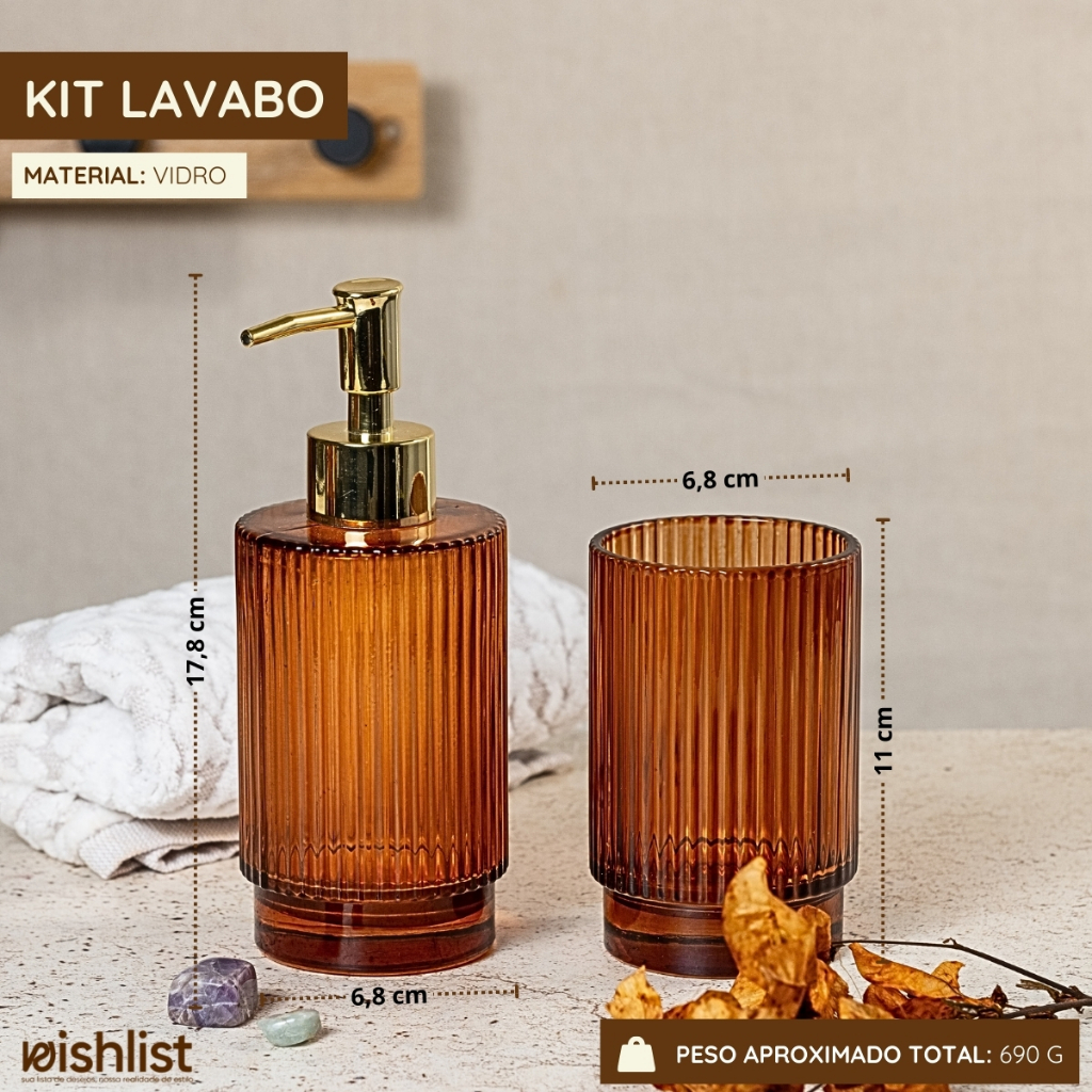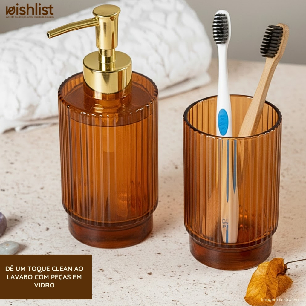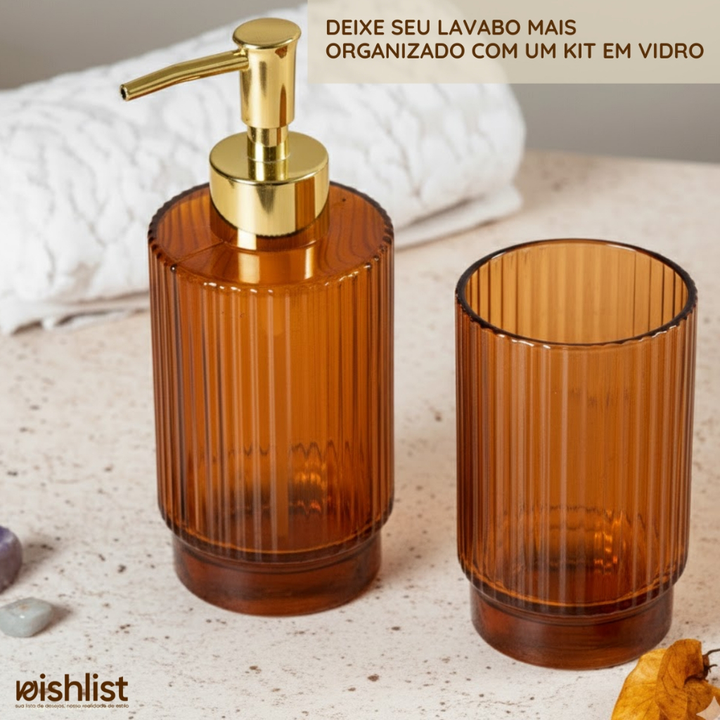 Kit Lavabo Banheiro em Vidro 2 Peças Porta Sabonete Liquido Copo (Kit e Unidade)