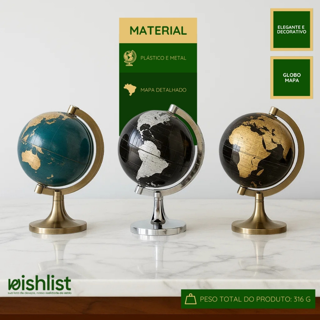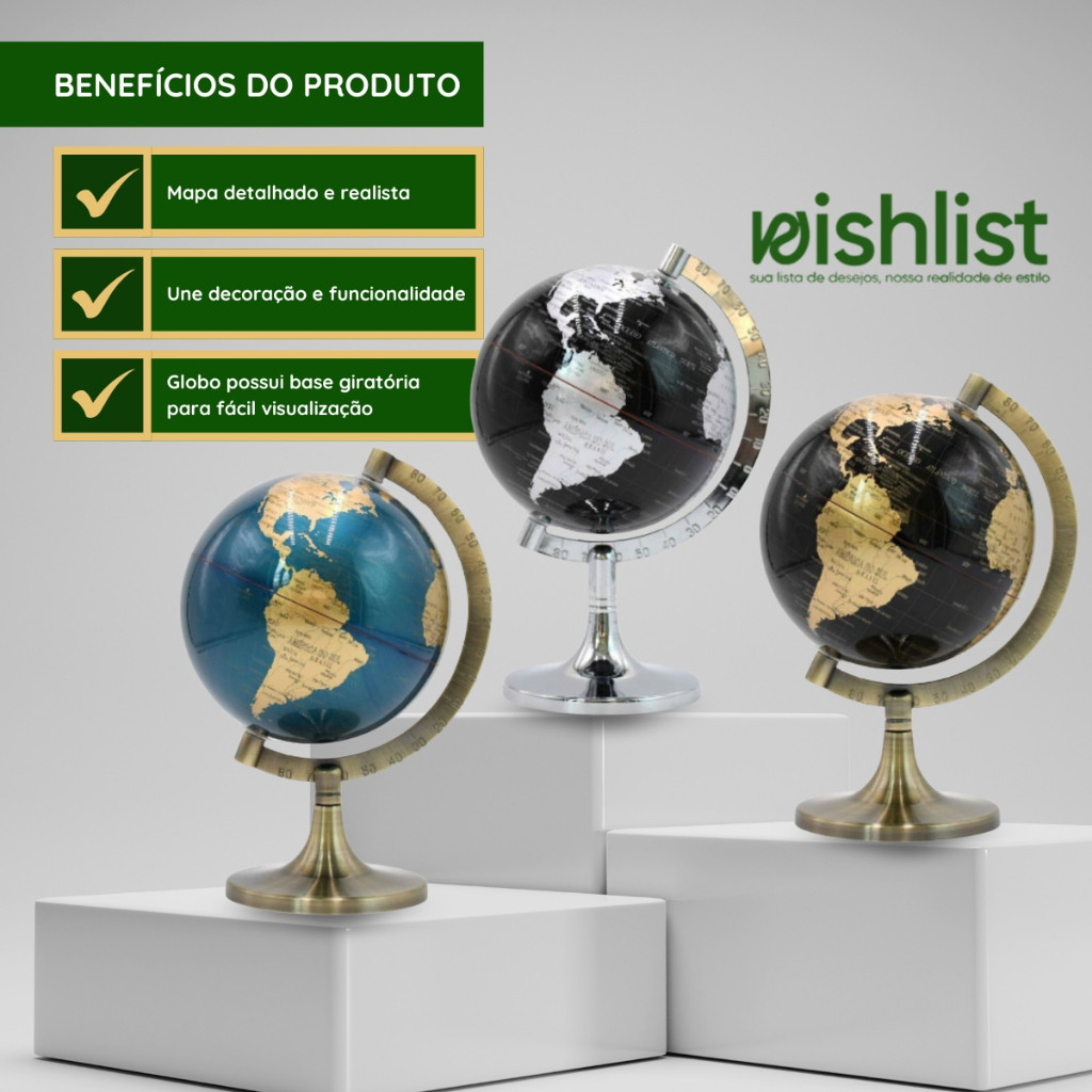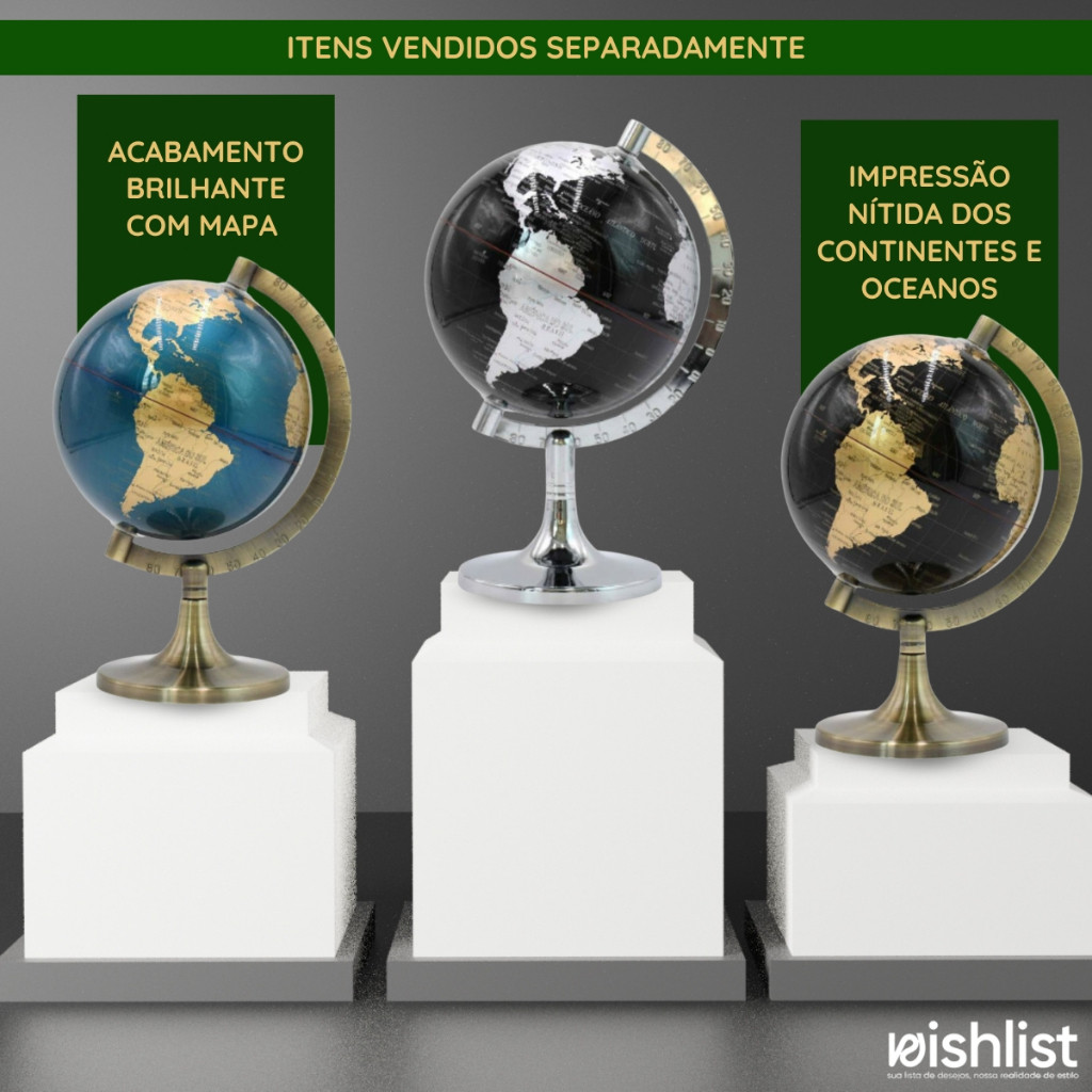 Globo Mapa Decorativo Base Giratória Design Moderno Detalhado Plástico Metal Escritório