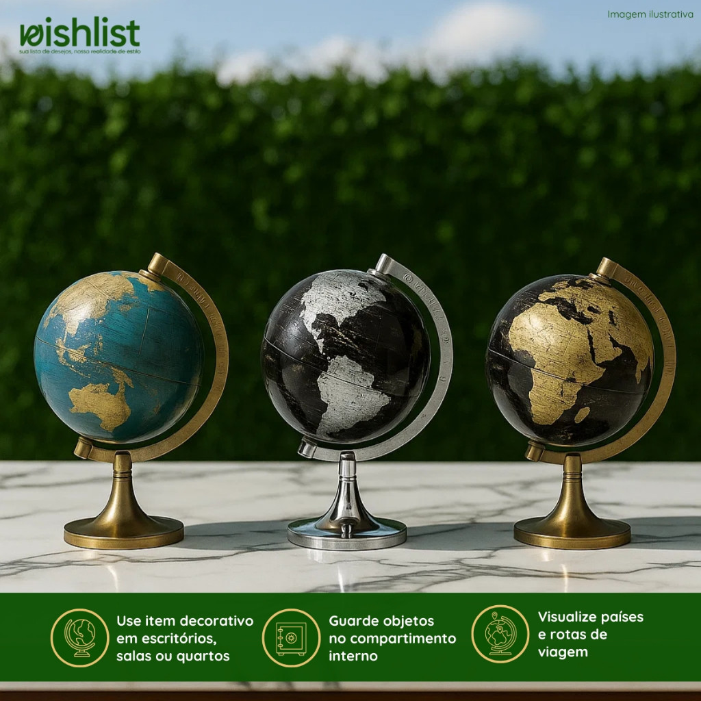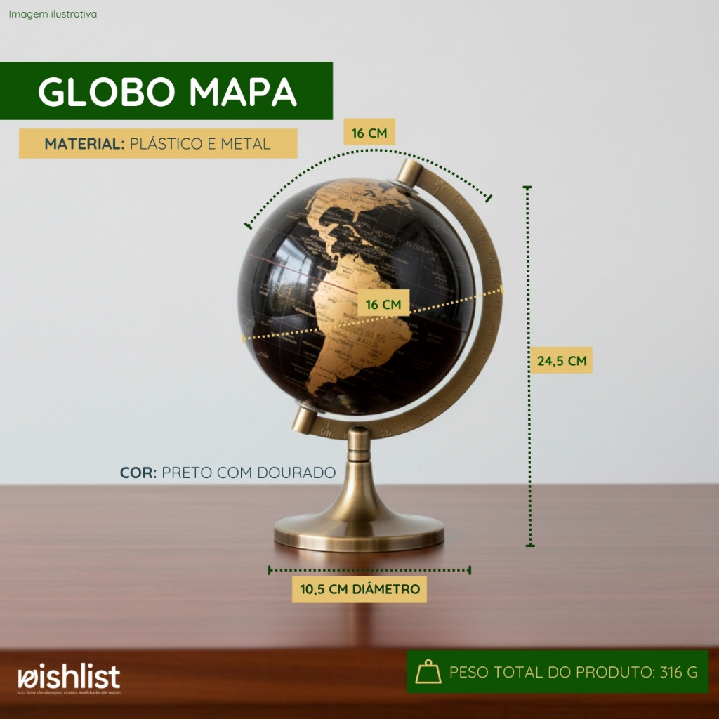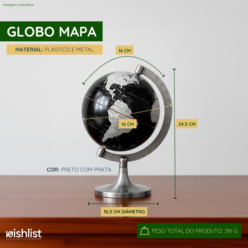 Globo Mapa Decorativo Base Giratória Design Moderno Detalhado Plástico Metal Escritório