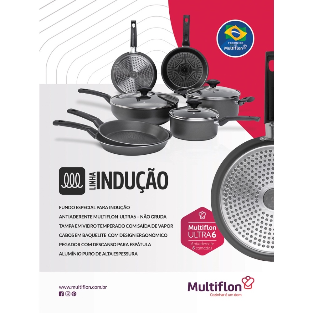 Frigideira Indução Antiaderente Fundo Triplo Inox 24cm Multiflon