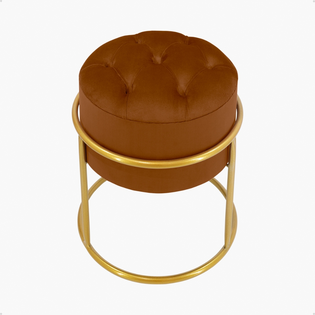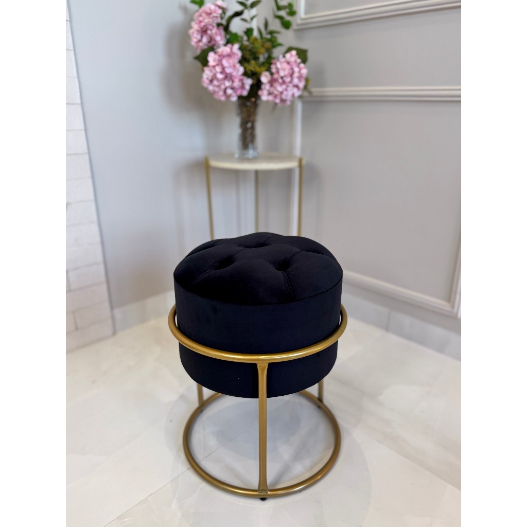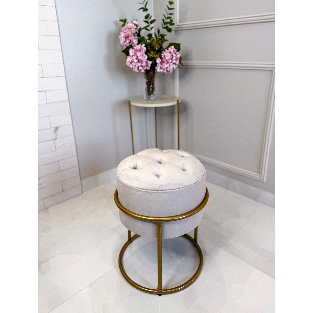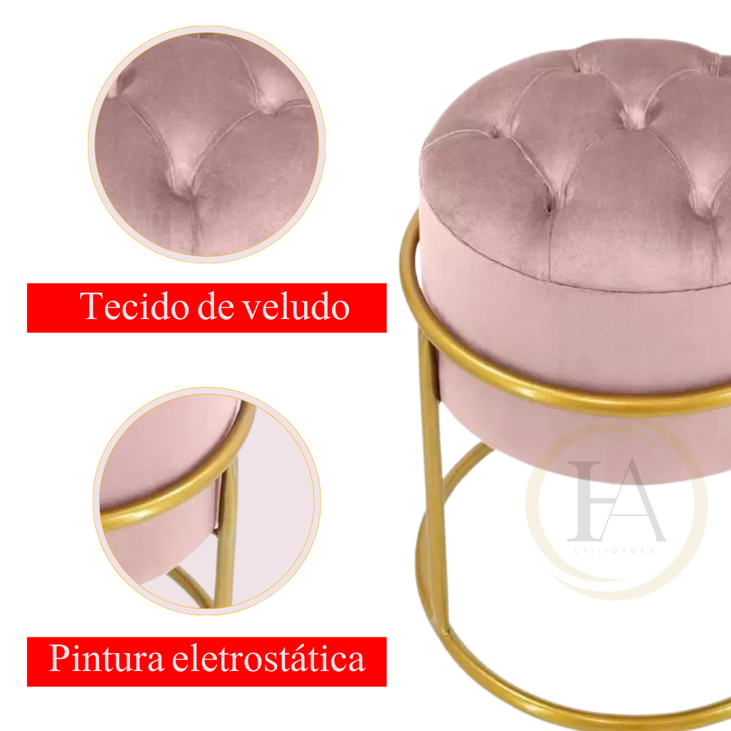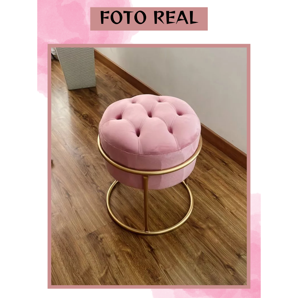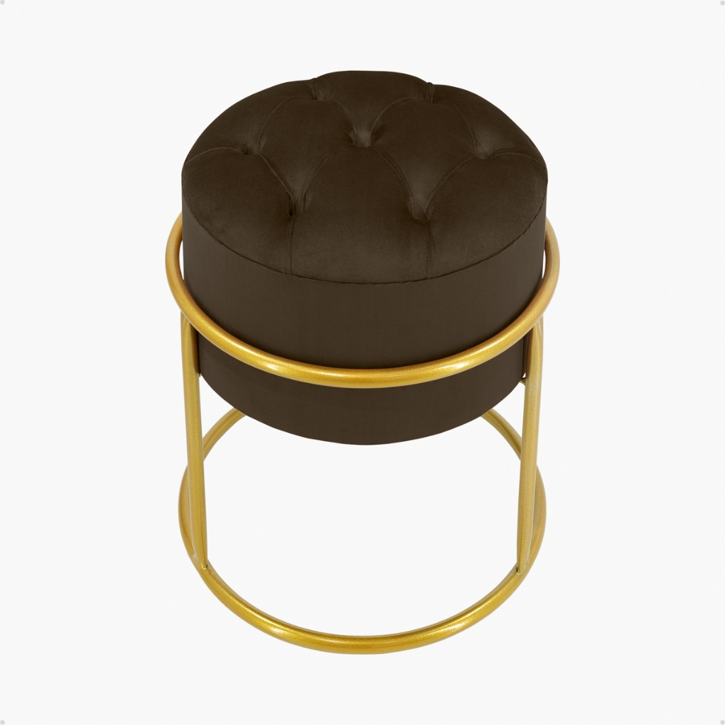 Puff redondo capitonê Decorativa com Argola de Ferro Dourado – Ideal para Quarto, Sala e Penteadeira
