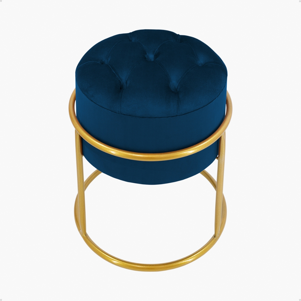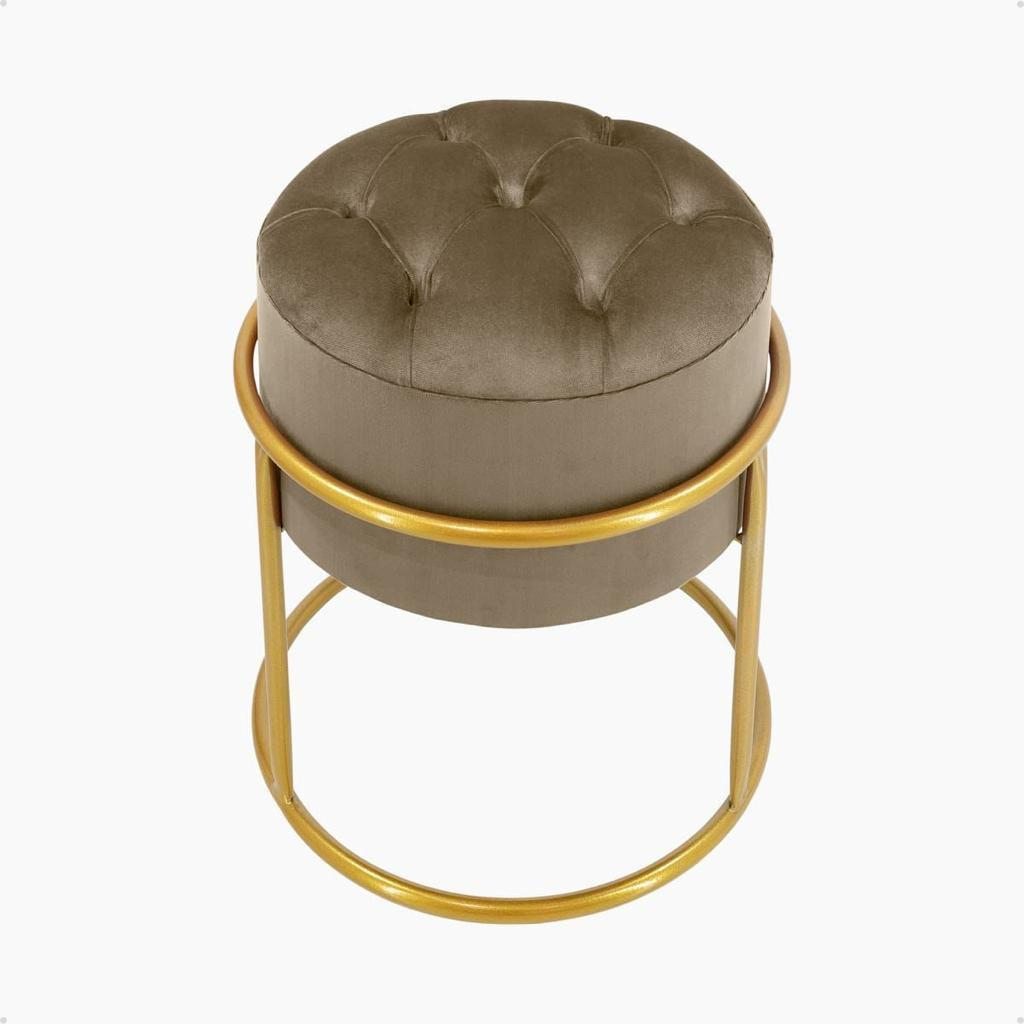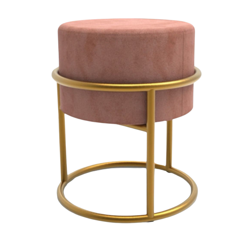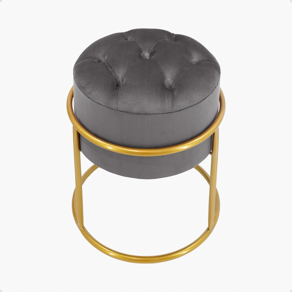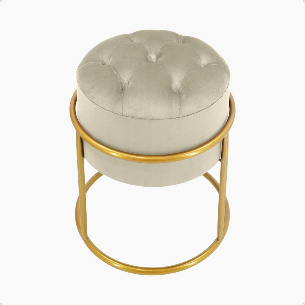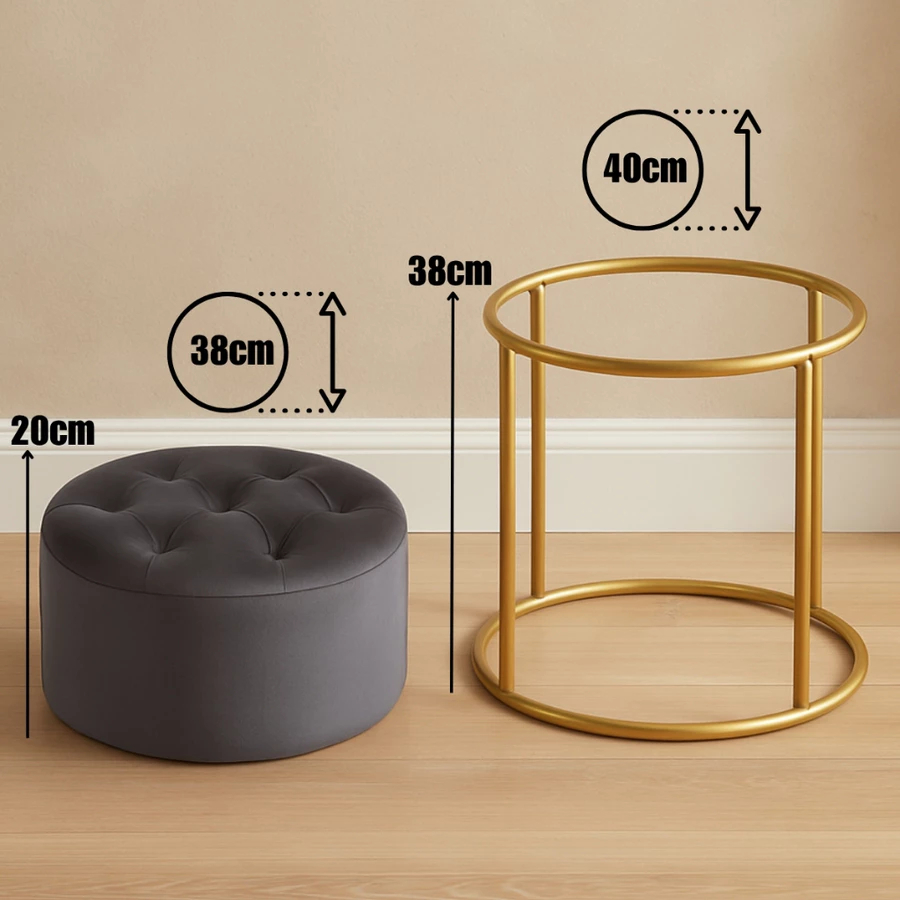 Puff redondo capitonê Decorativa com Argola de Ferro Dourado – Ideal para Quarto, Sala e Penteadeira