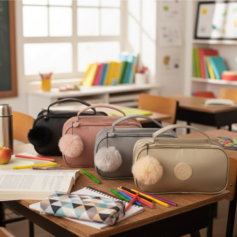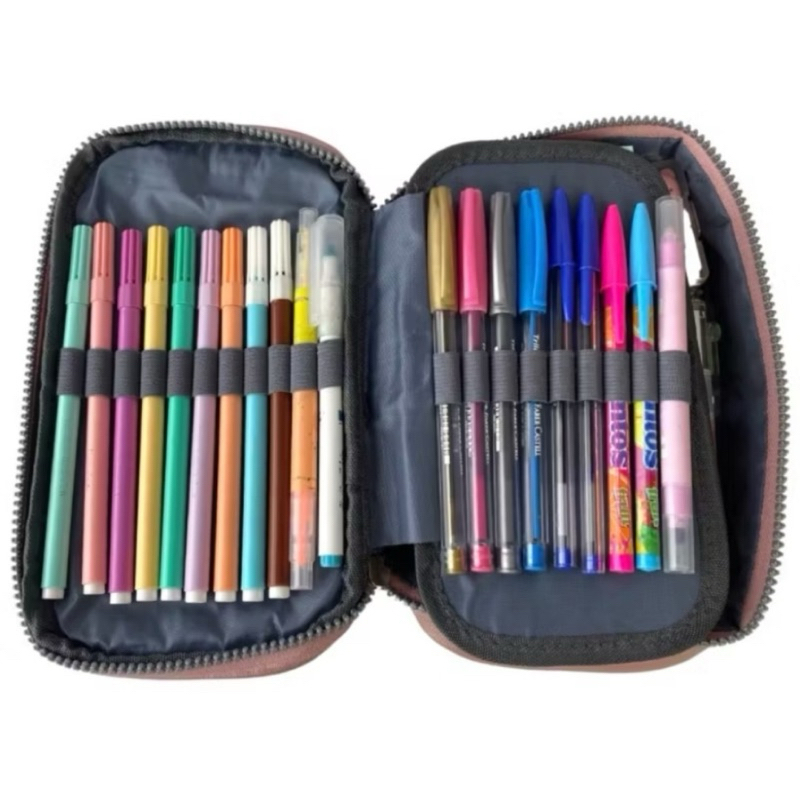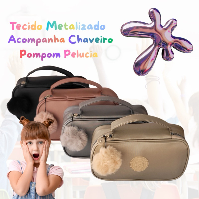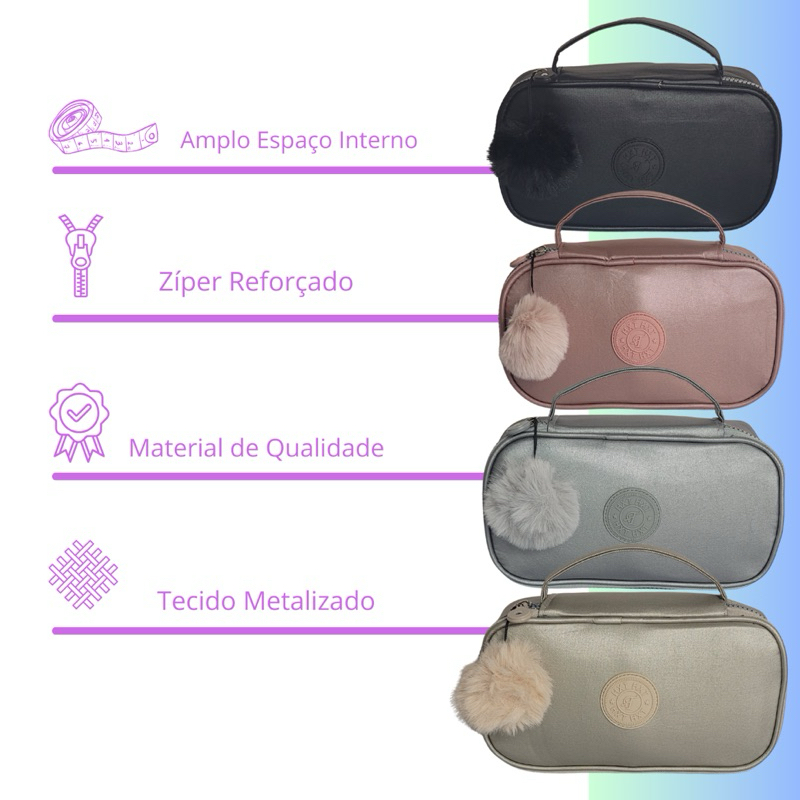 Estojo Escolar Box 50 Pens Metalizado Com Alça e Pompom