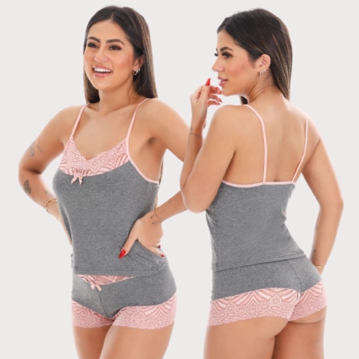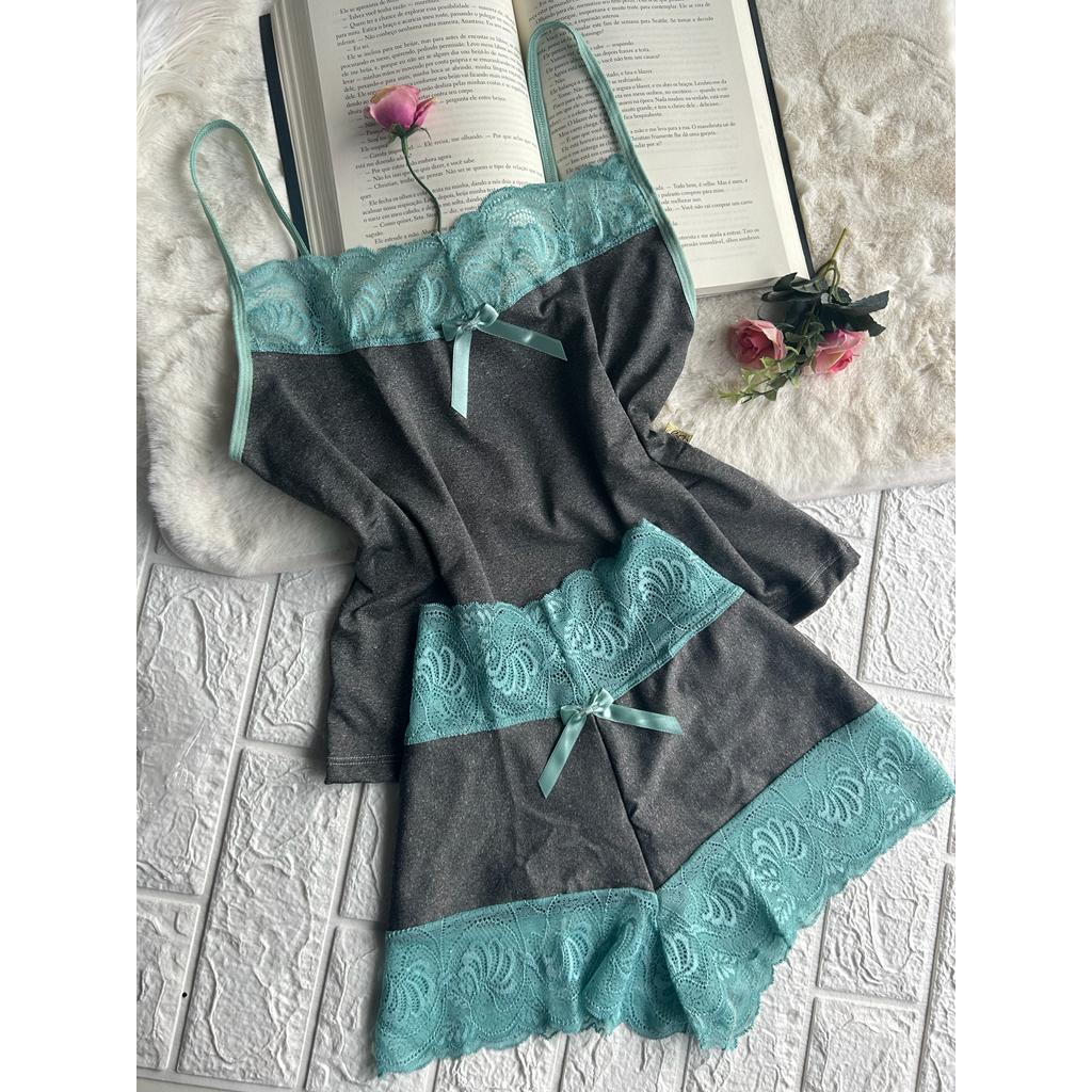 Baby Doll de Renda Short Doll Romantic Camisete Feminino