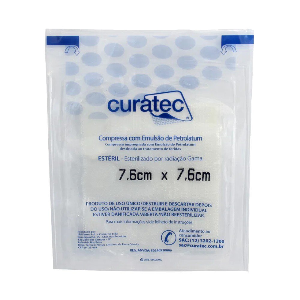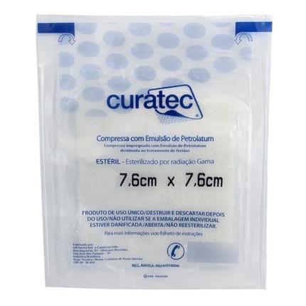 10 Curativos Compressa Petrolatum 7,6x7,6cm Estéril Curatec Feridas Cicatrização Durabilidade