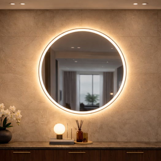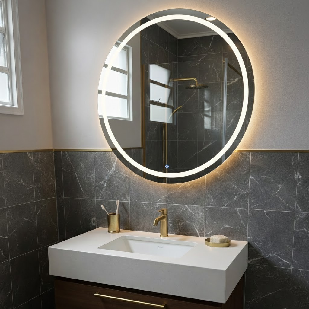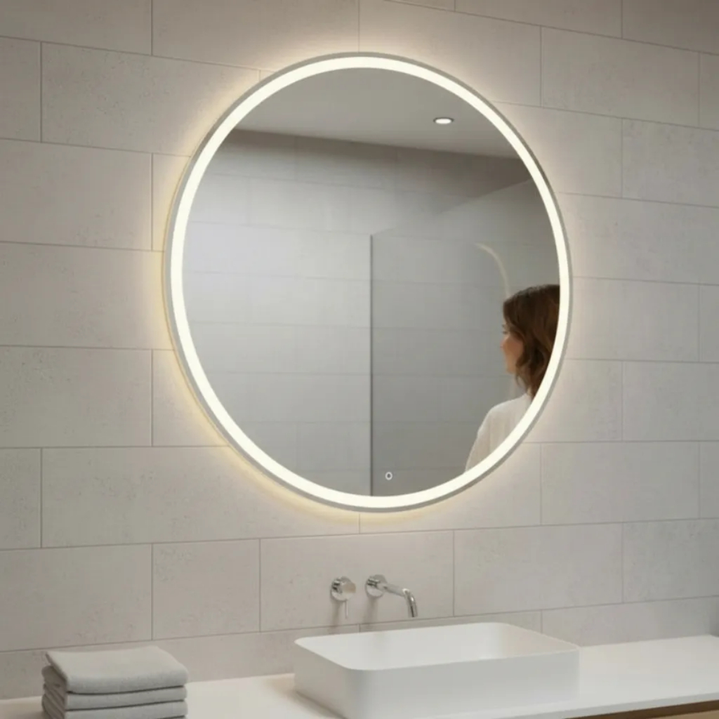 Espelho Redondo Jateado com LED 3 Cores Vários Tamanhos para Sala Banheiro Salão