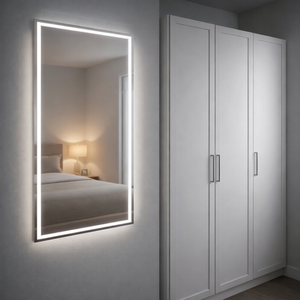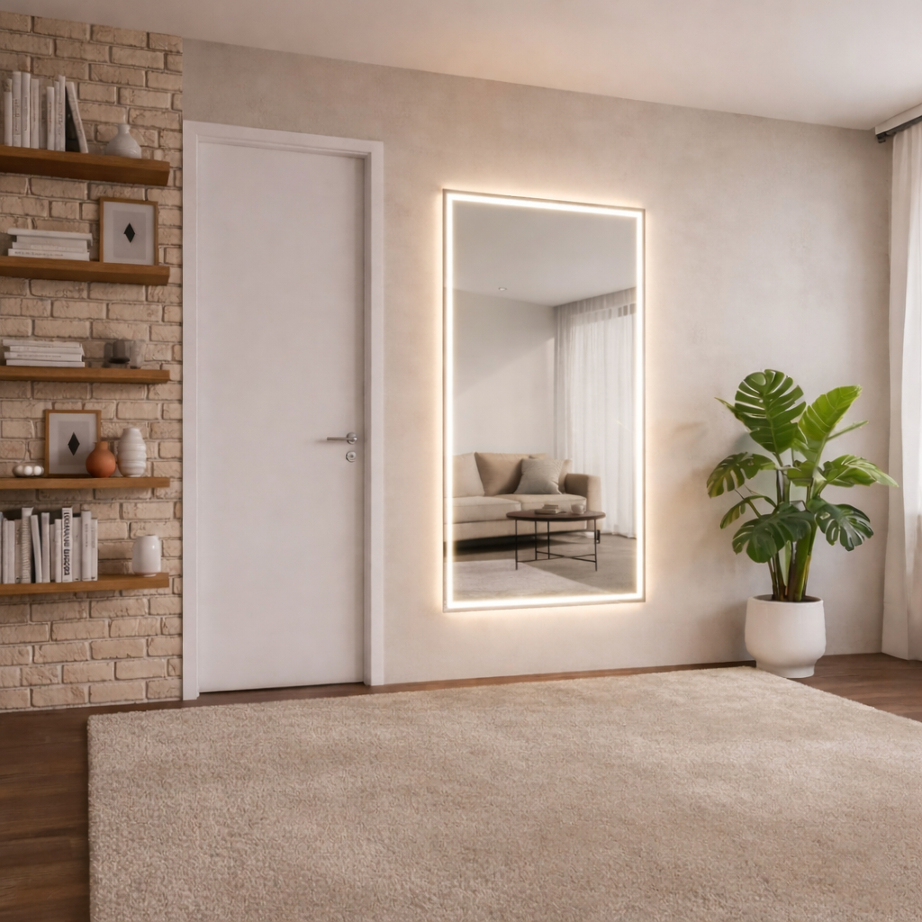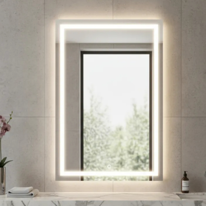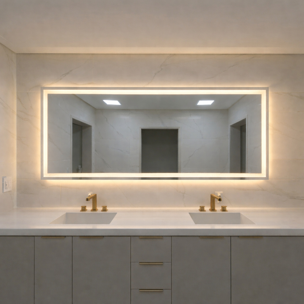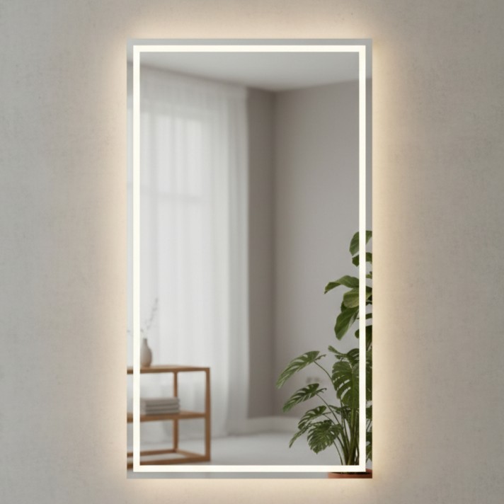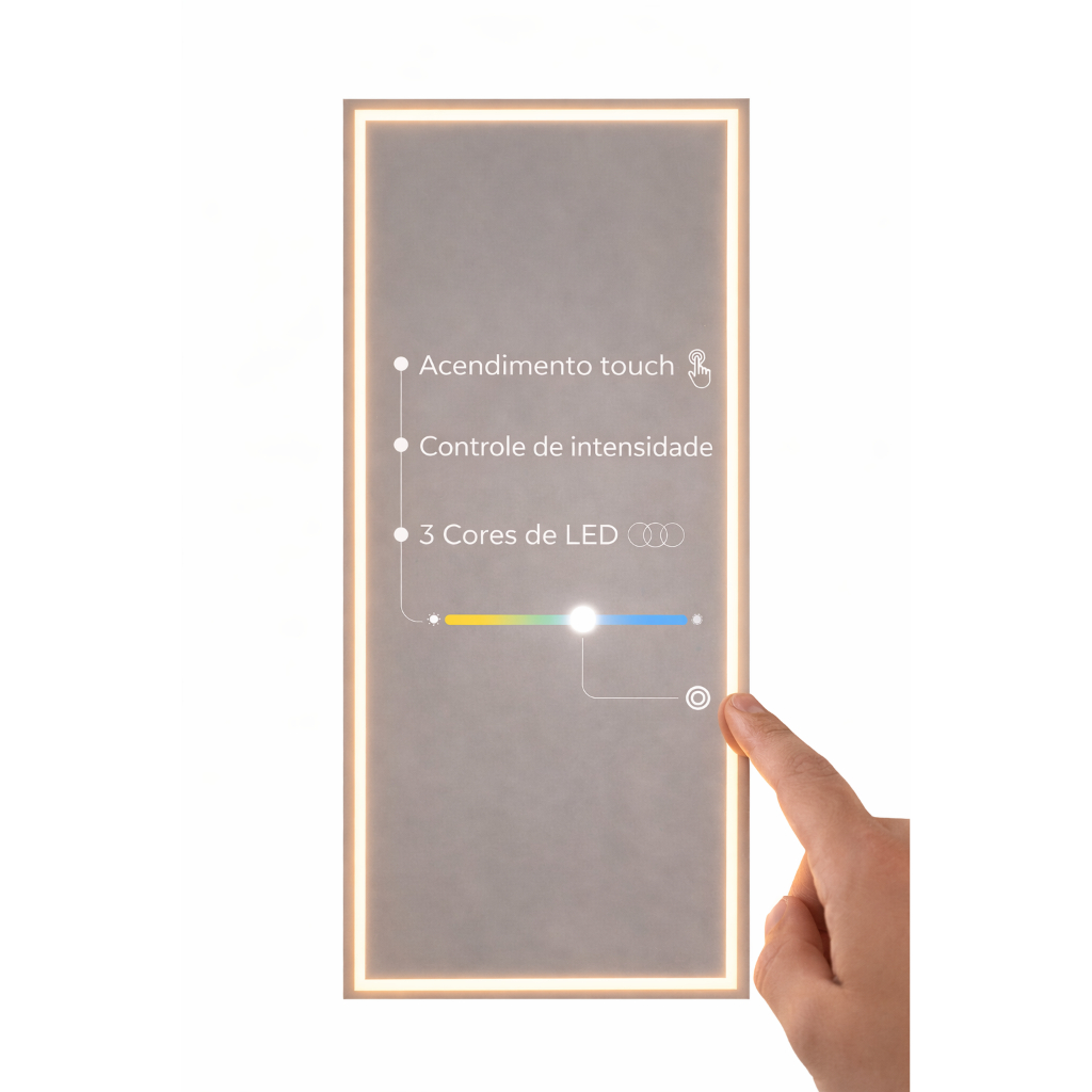 Espelho Retangular Grande Jateado com 3 cores Led 70x90 Lapidado Banheiro Decoração Salão Maquiagem