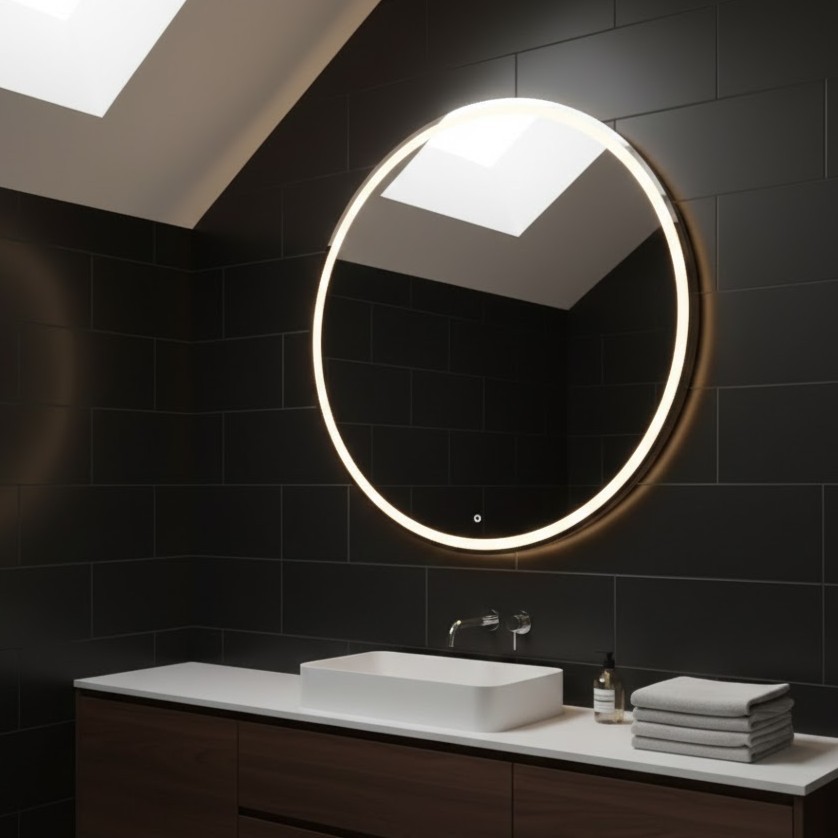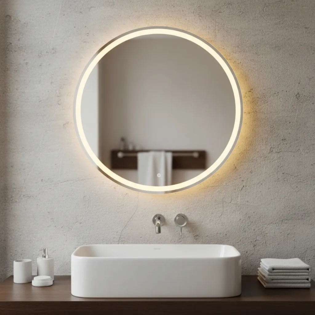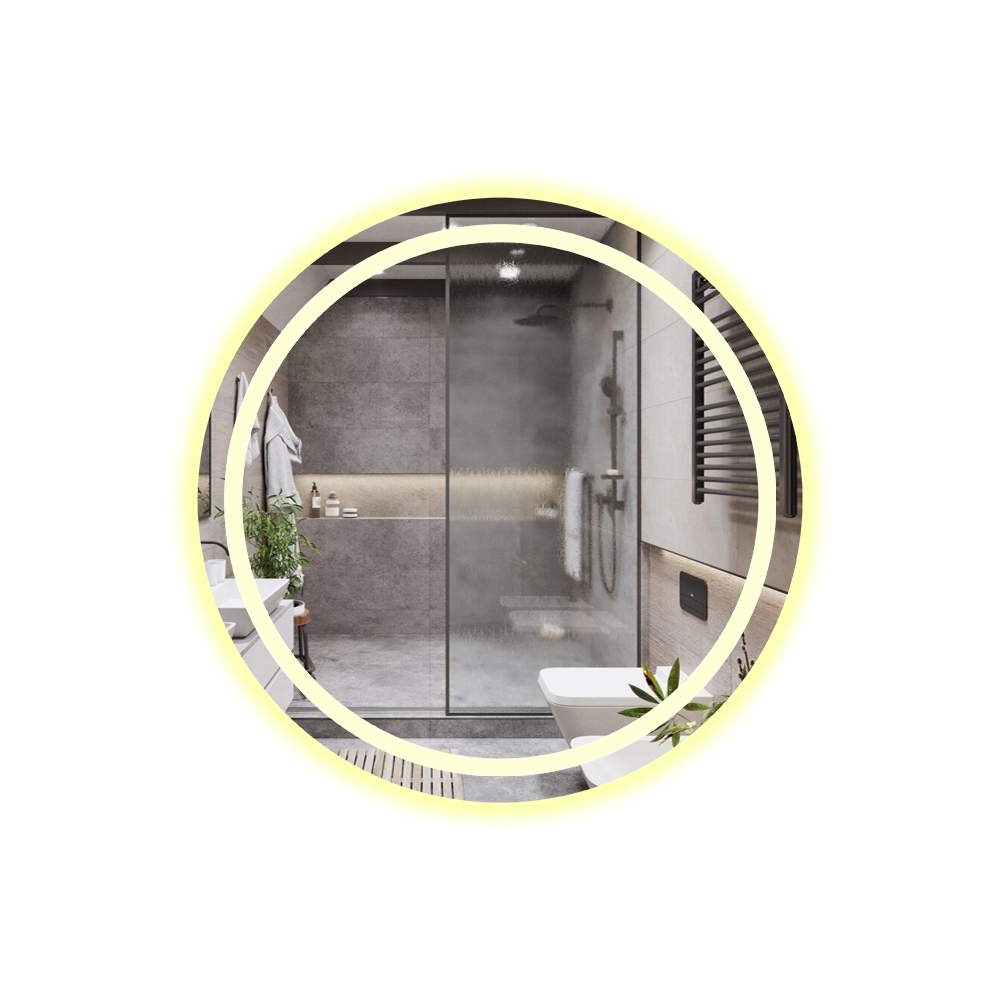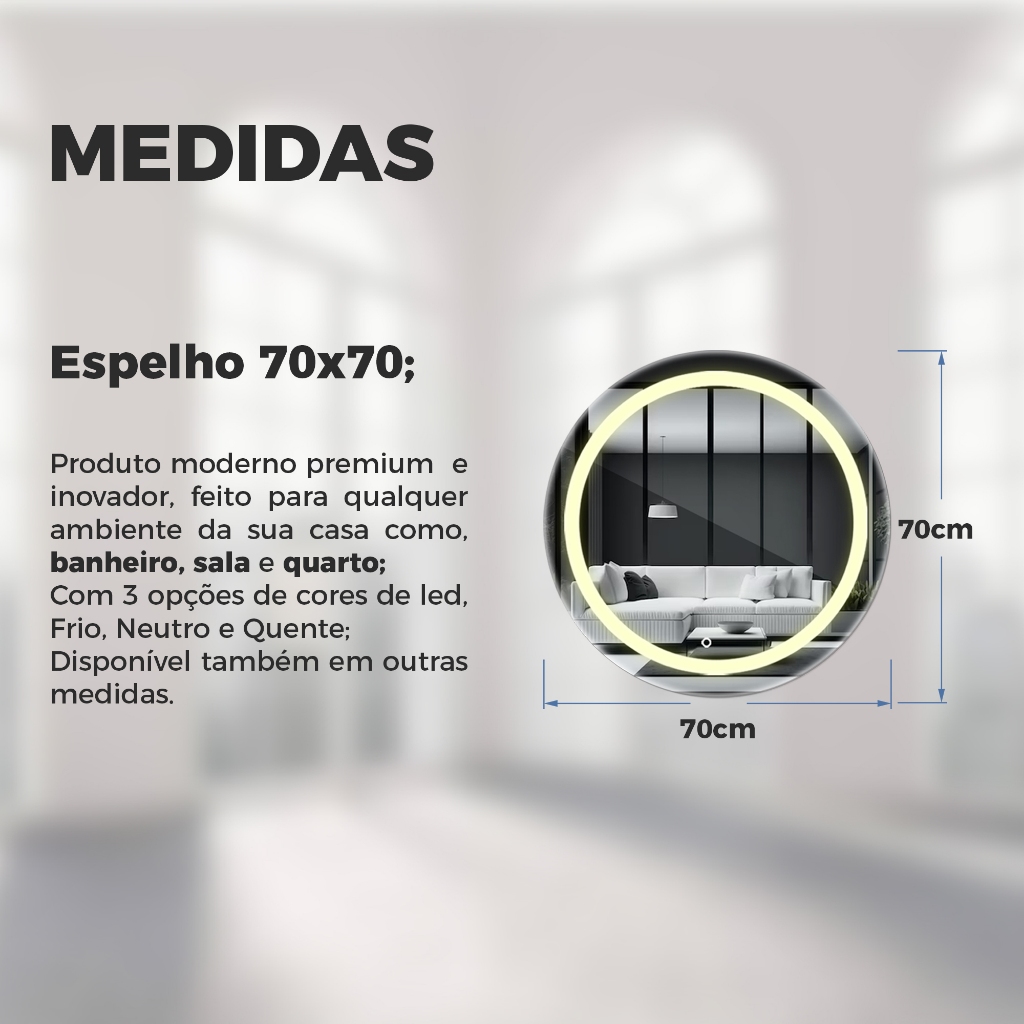Espelho Redondo 70x70cm Jateado Lapidado 3 Cores LED Touch Decoração Parede