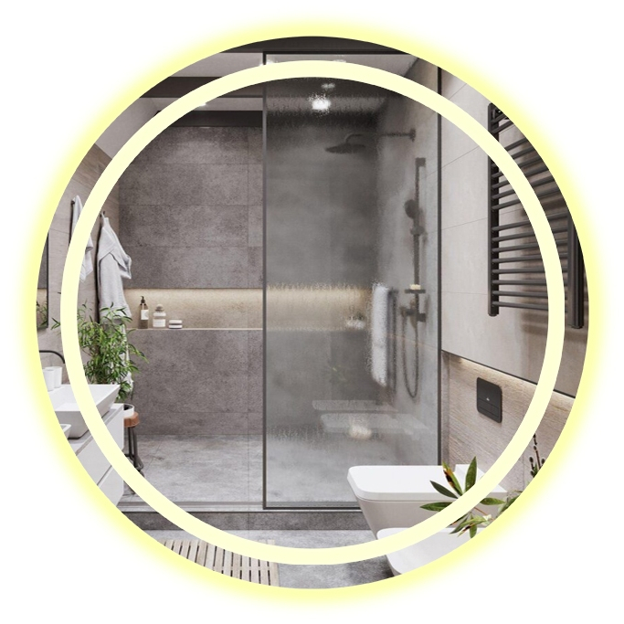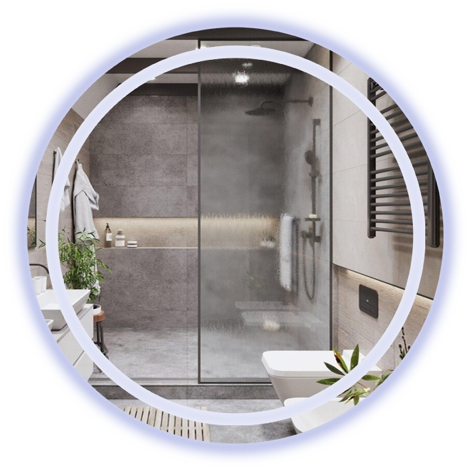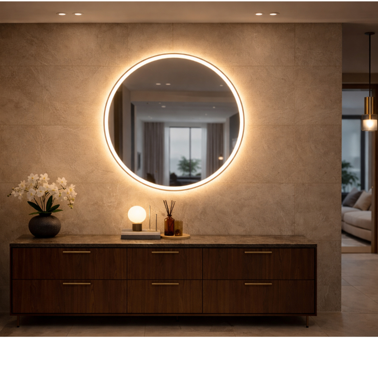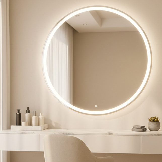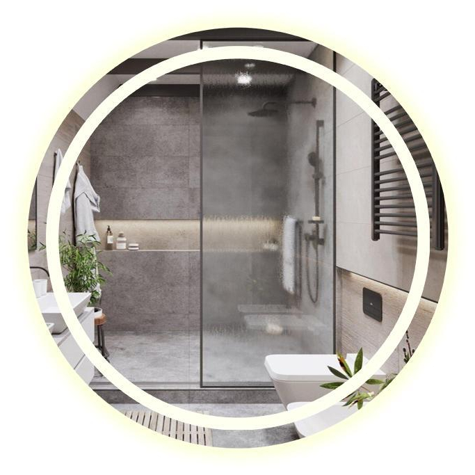 Espelho Redondo Jateado com 3 Cores LED 90x90 Lapidado Sala Salão Quarto Banheiro