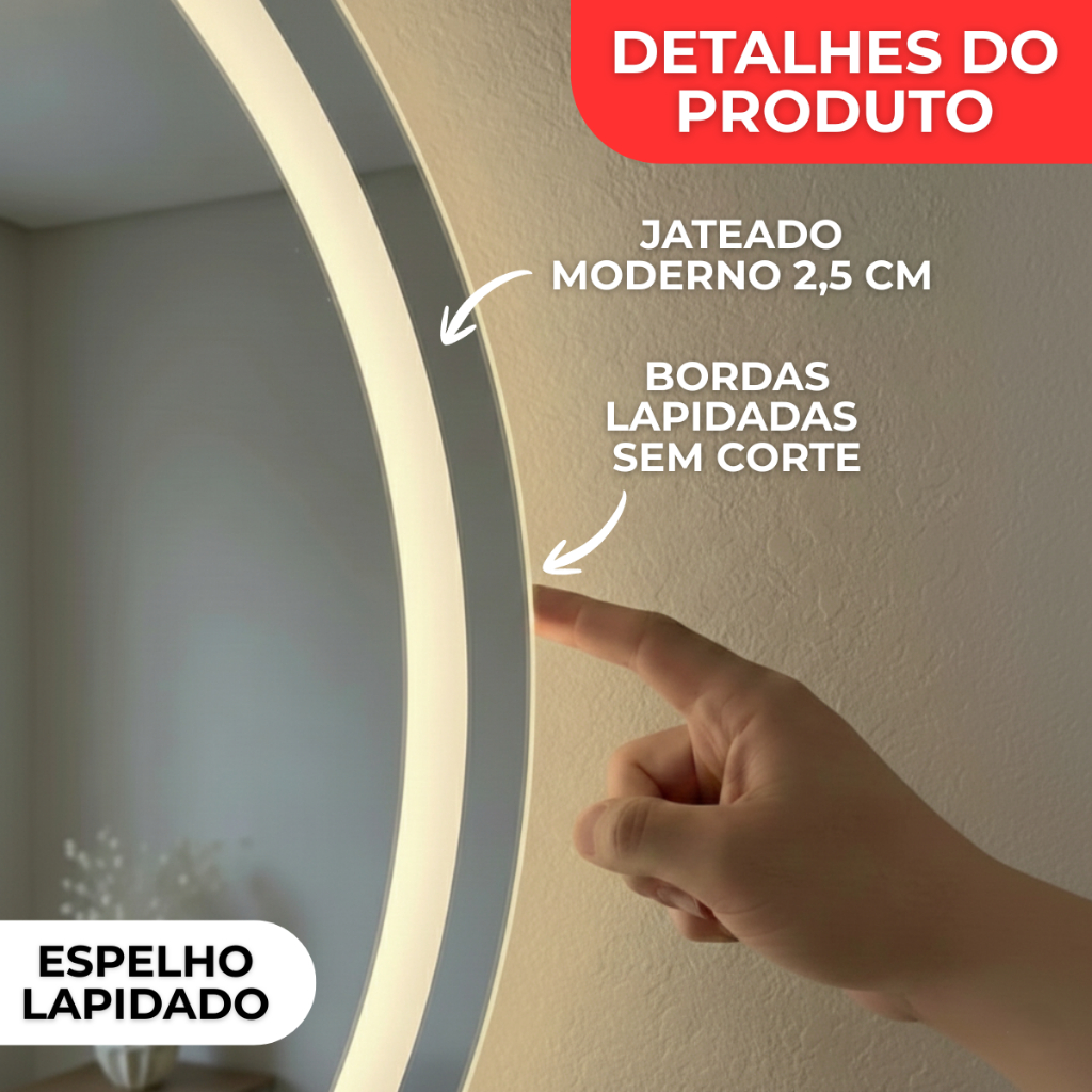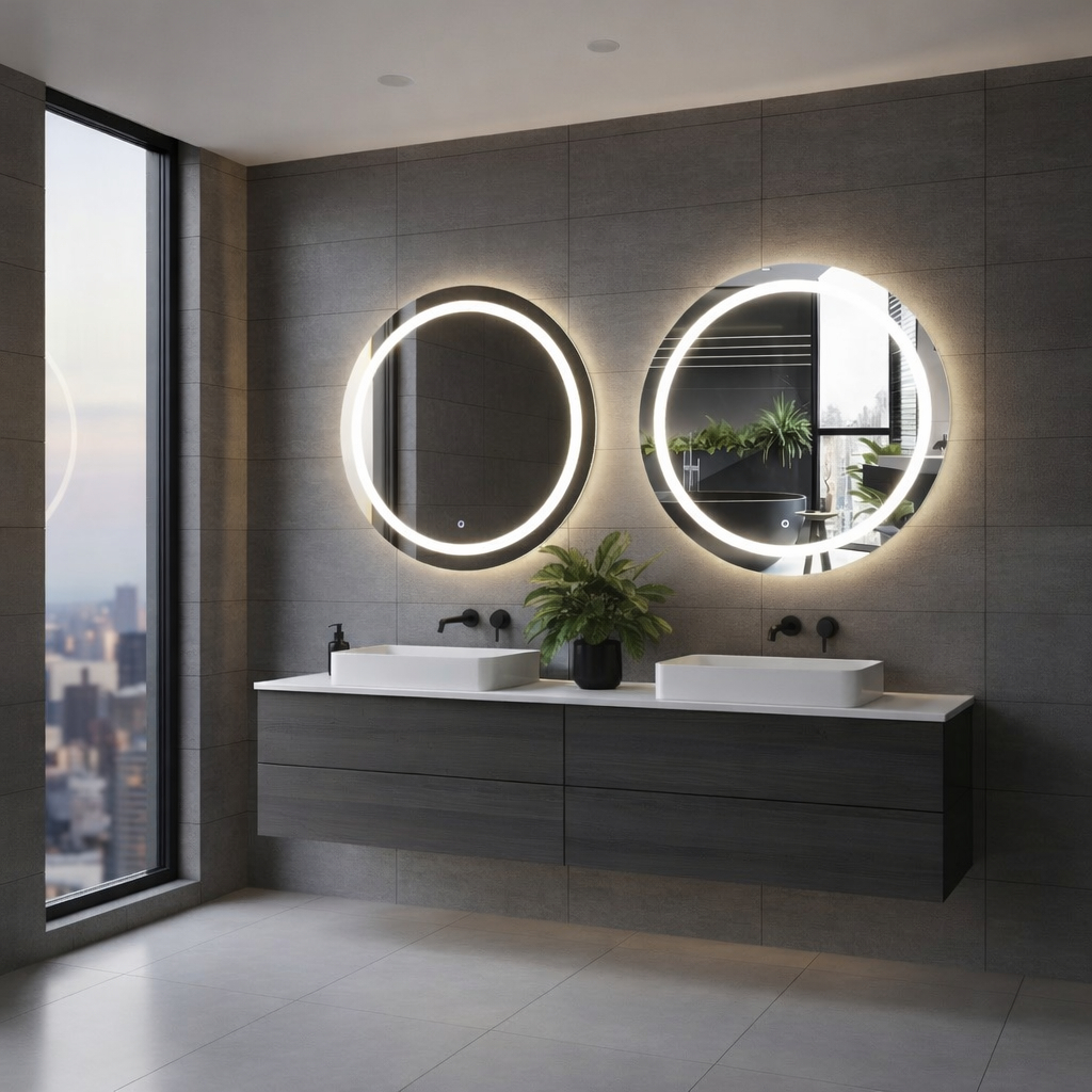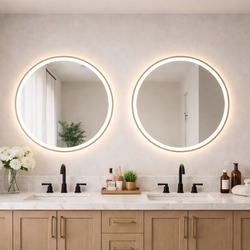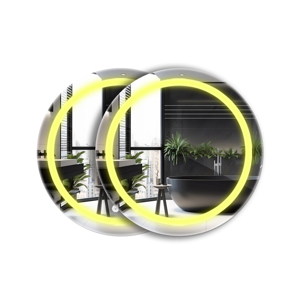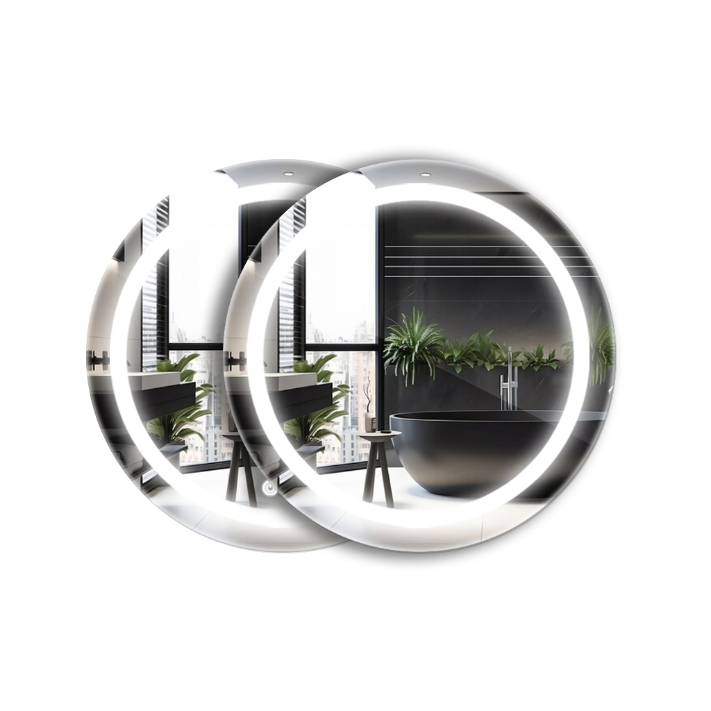 Kit 2 Espelhos Redondos 80x80cm com 3 Cores LED Touch Jateados Decorativos