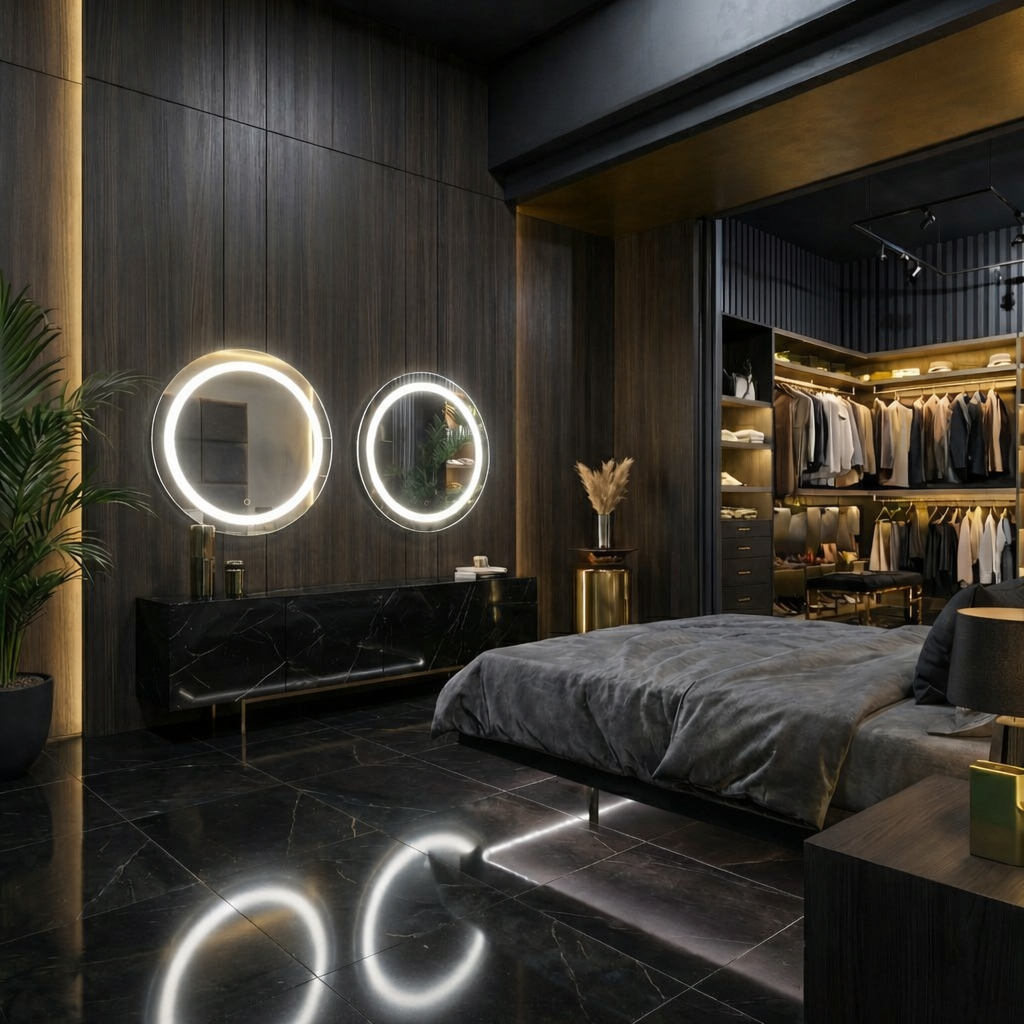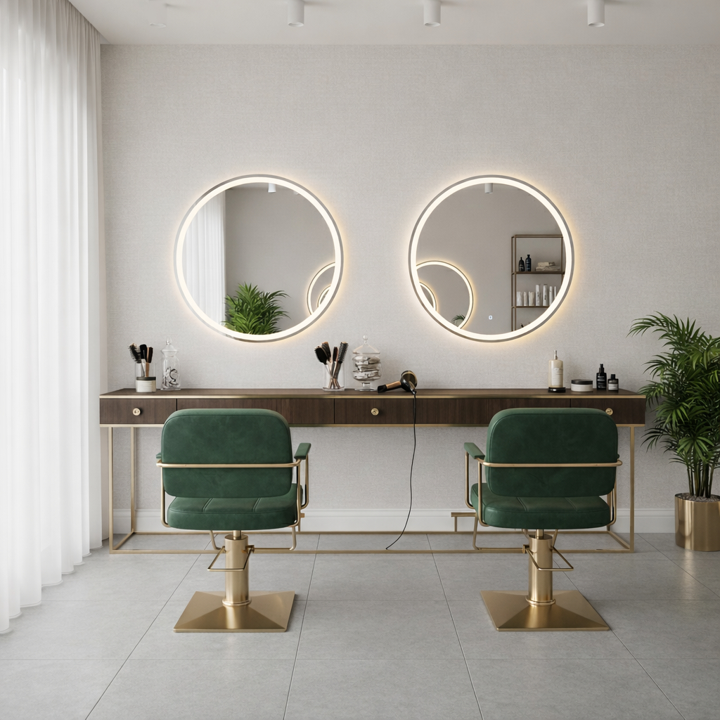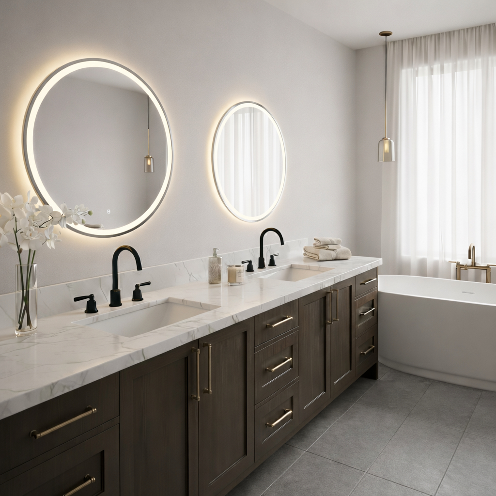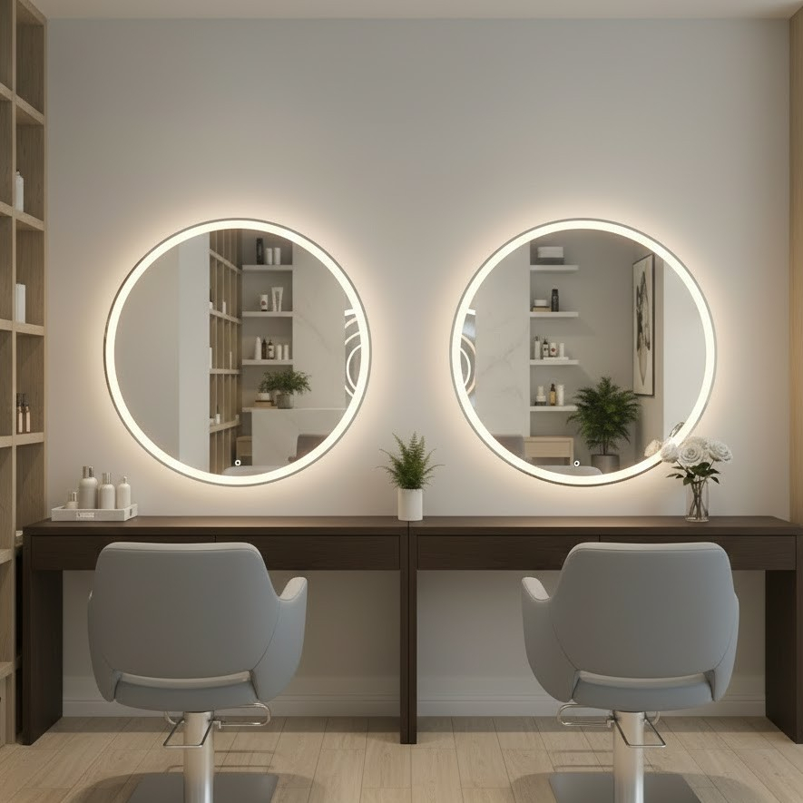 Kit 2 Espelhos Redondos 80x80cm com 3 Cores LED Touch Jateados Decorativos