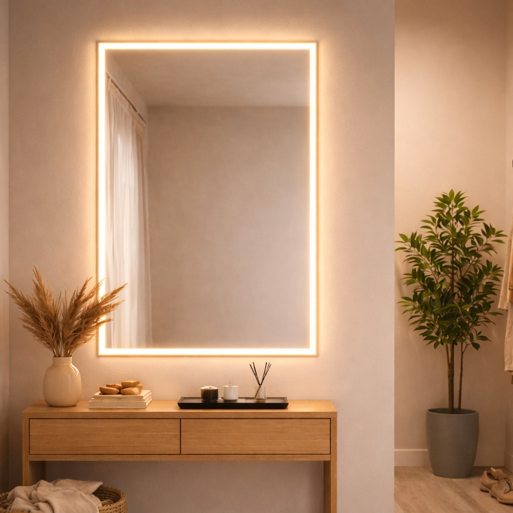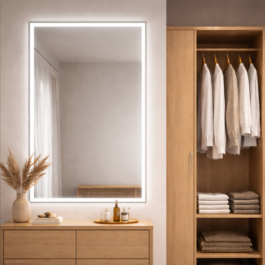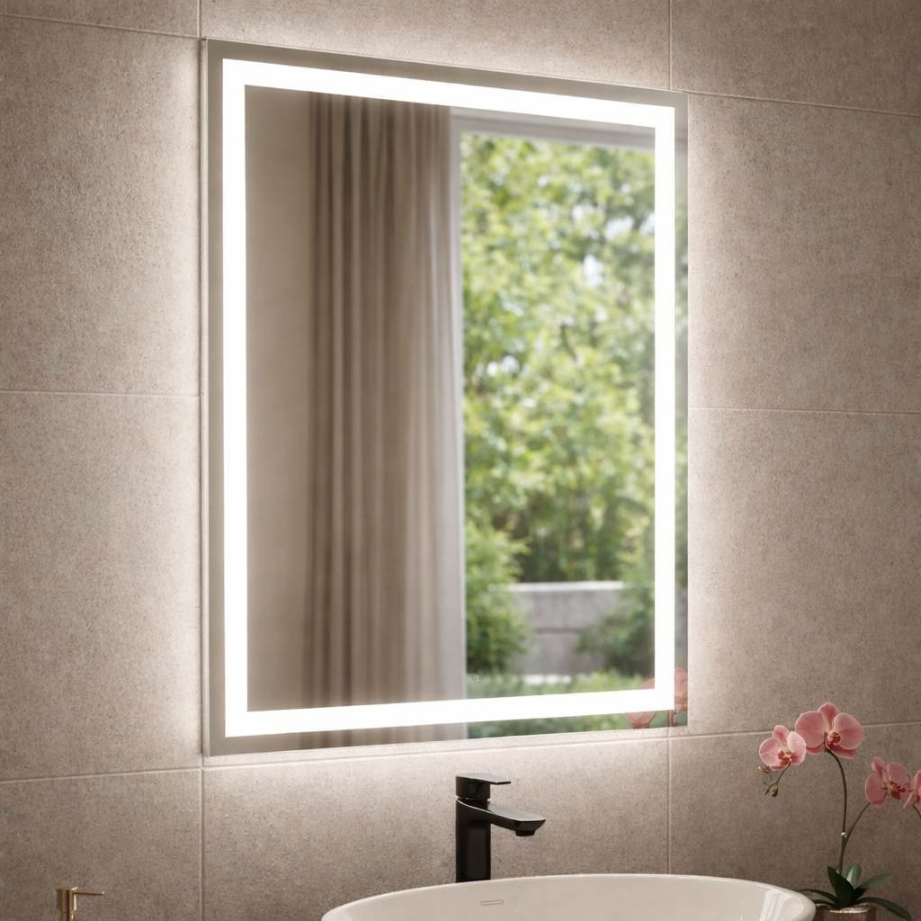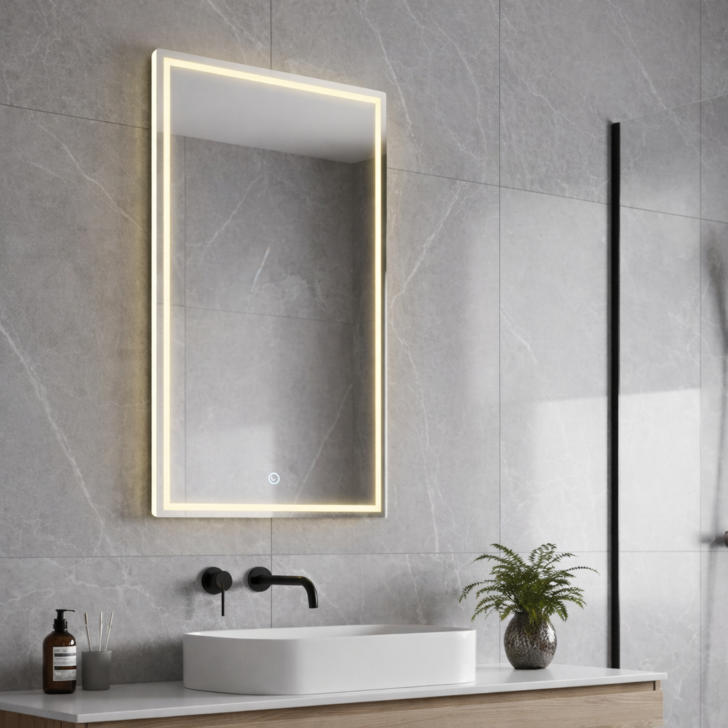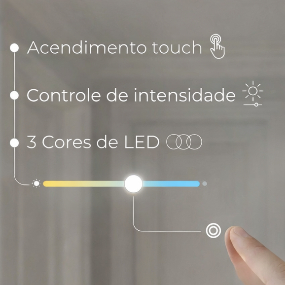 Espelho Retangular 60x80cm Jateado LED Touch 3 Cores Banheiro Luxo