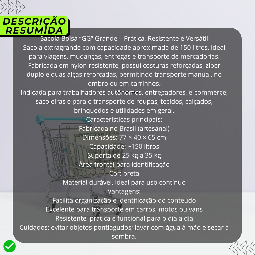 BOLSA SACOLÃO "GG" Para VIAGEM SACOLEIRA MUDANÇA Transporte Bolsa COM ZÍPER para Cadeado Sacola GRANDE