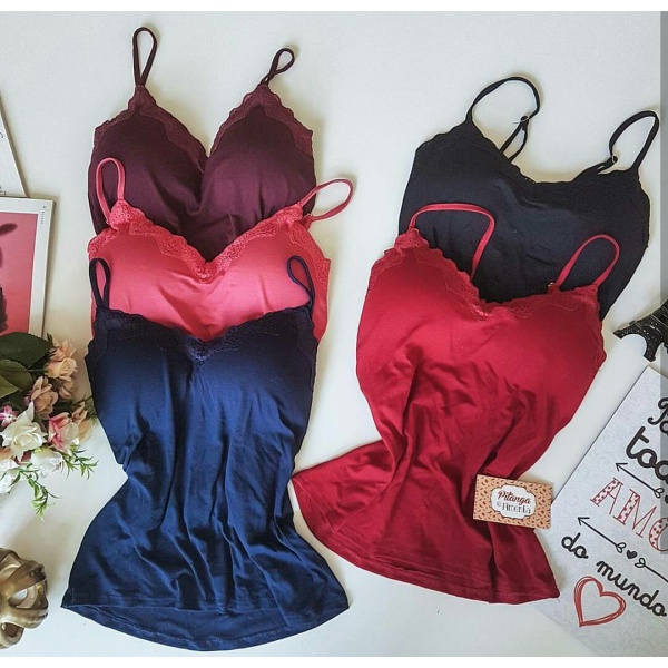 Regata com bojo P M G GG PLUS malha com renda alcinha ajustavel feminina