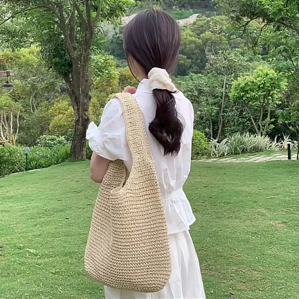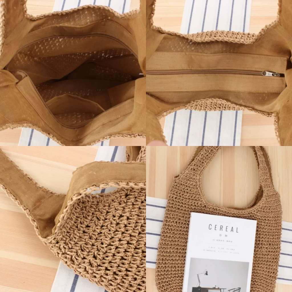 Bolsa De Palha Feminina Com Alça De Ombro Fechamento De Ziper FP6812#
