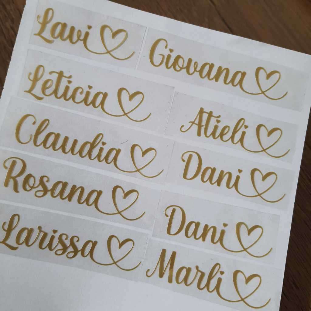 Nomes em adesivos termocolantes personalizados para portajóias e outros.
