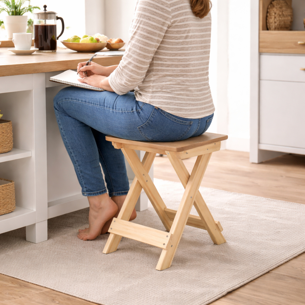 Banco Dobrável Portátil em Madeira MDF Ocupa Pouco Espaço
