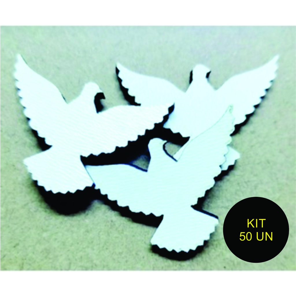 Kit 50 un Mini Pomba em MDF branco 3mm