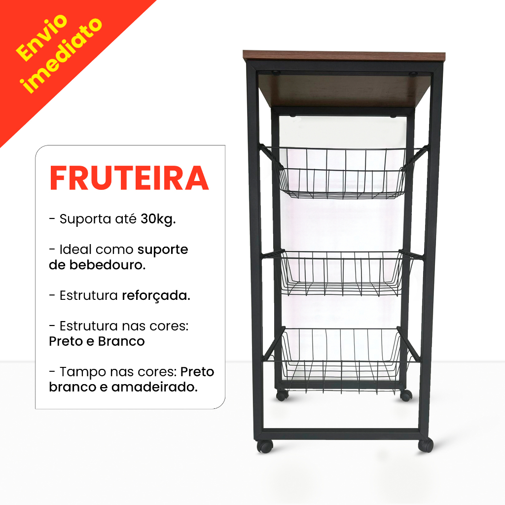 Fruteira De Chão Para Cozinha Em Mdf Aço