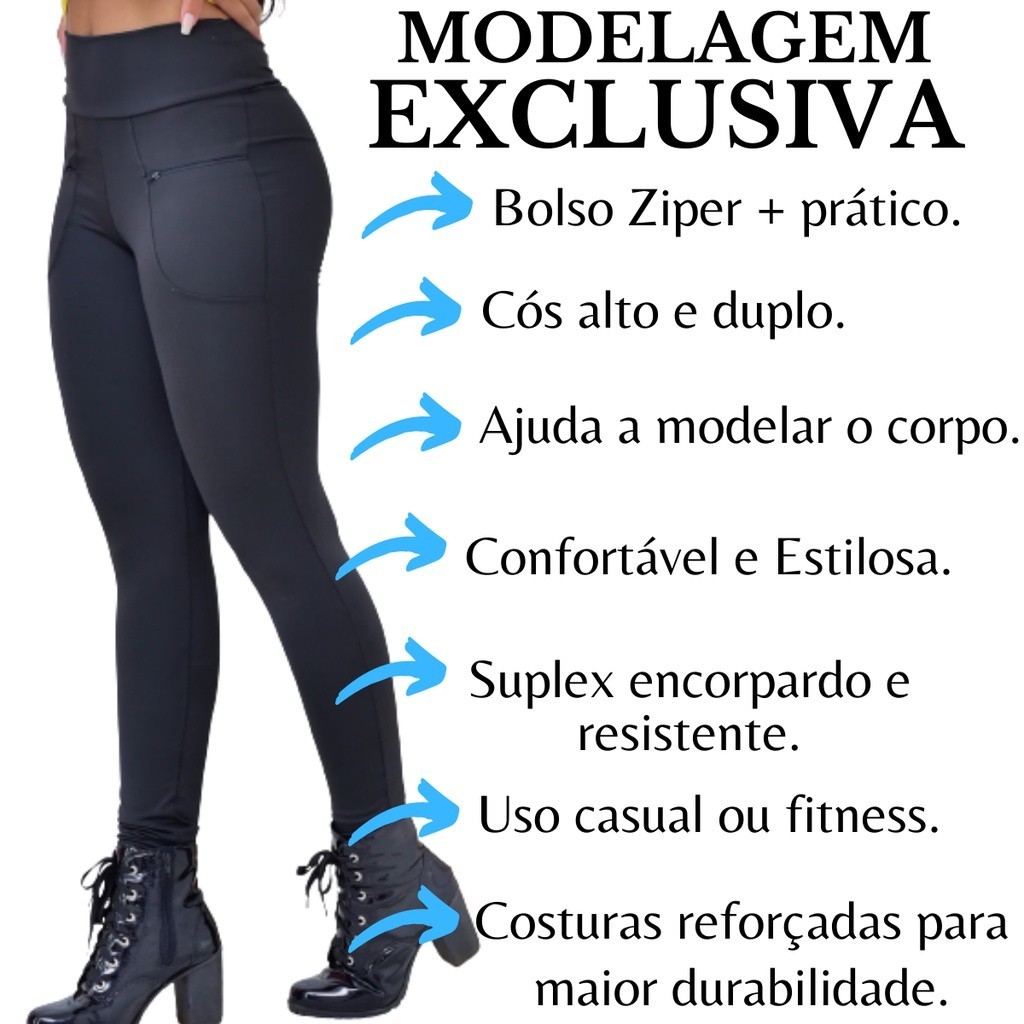 Calça Legging Leg Feminina Cintura Alta Montaria Bolso Ziper P-34 ao G4-60