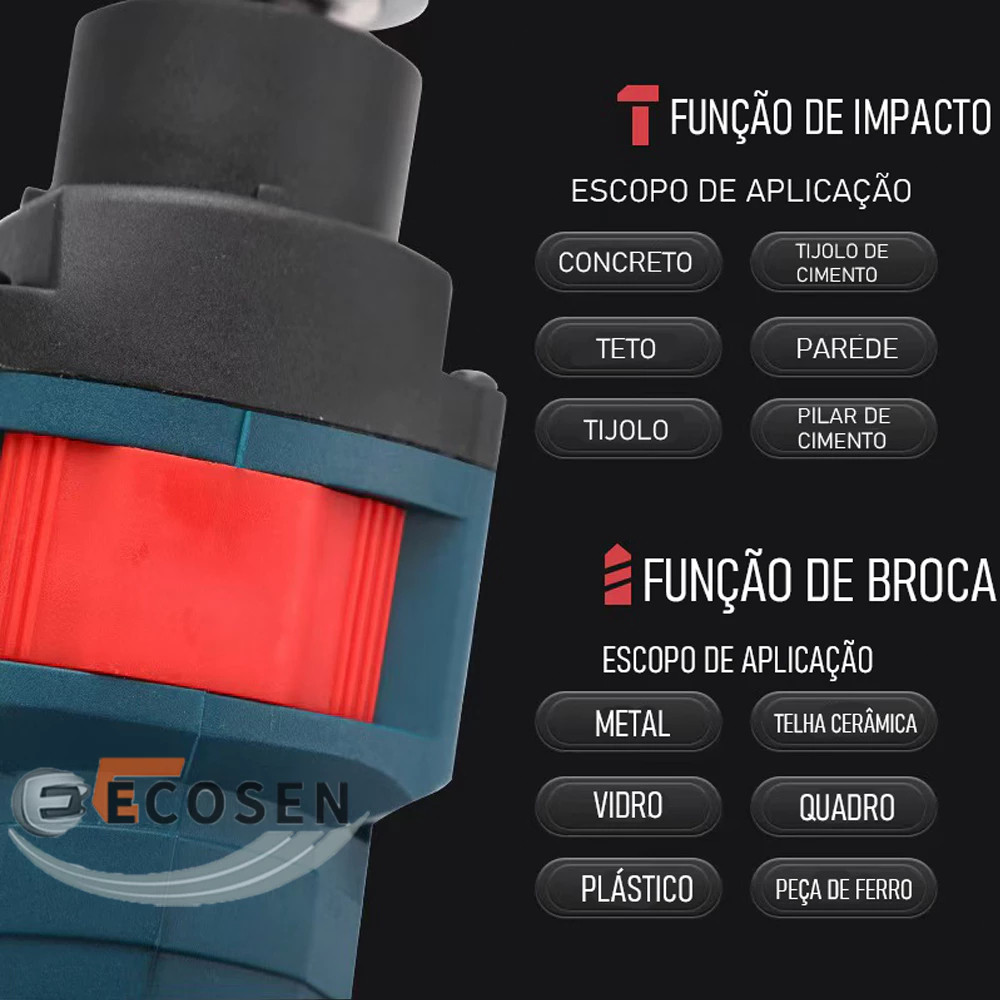 Furadeira Auto Reverso de Impacto Parafusadeira Drill 3200R/MIN