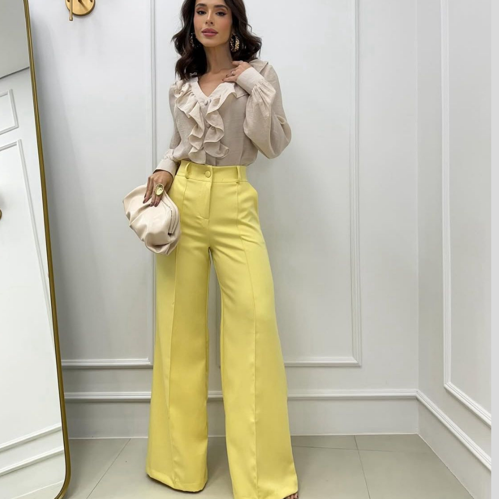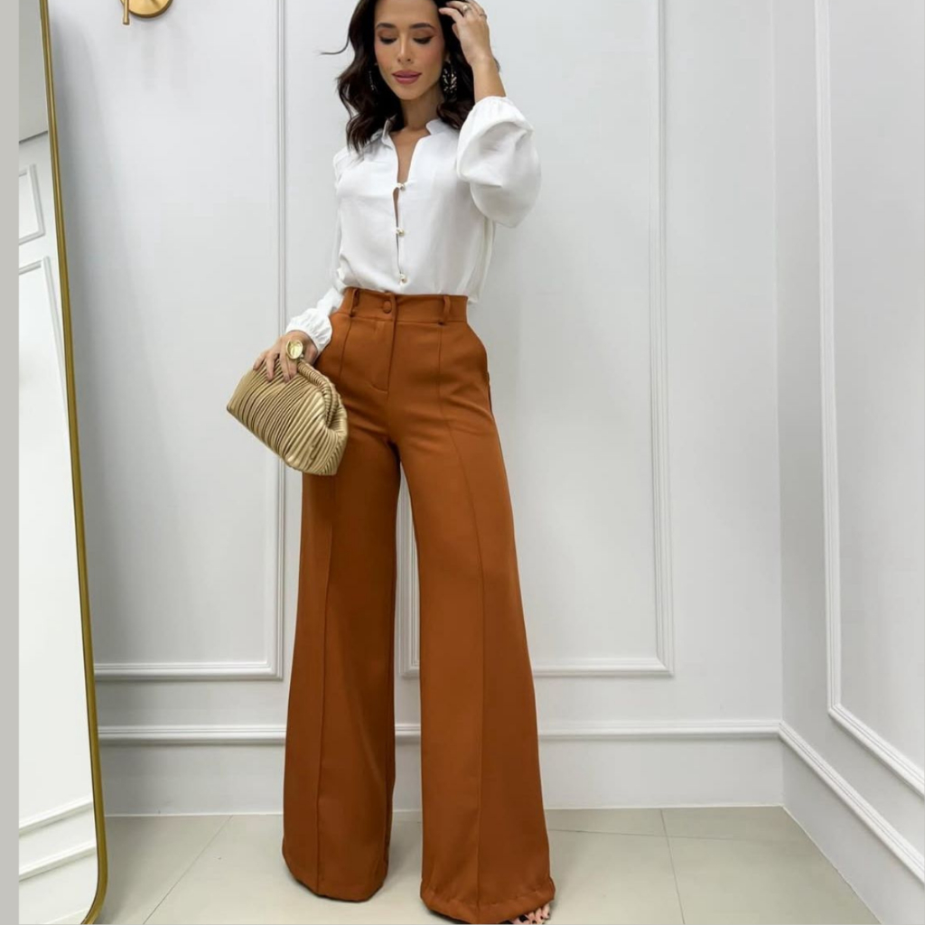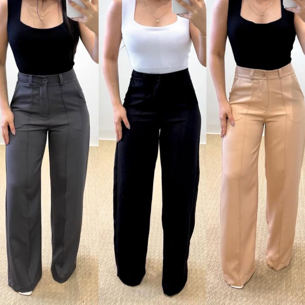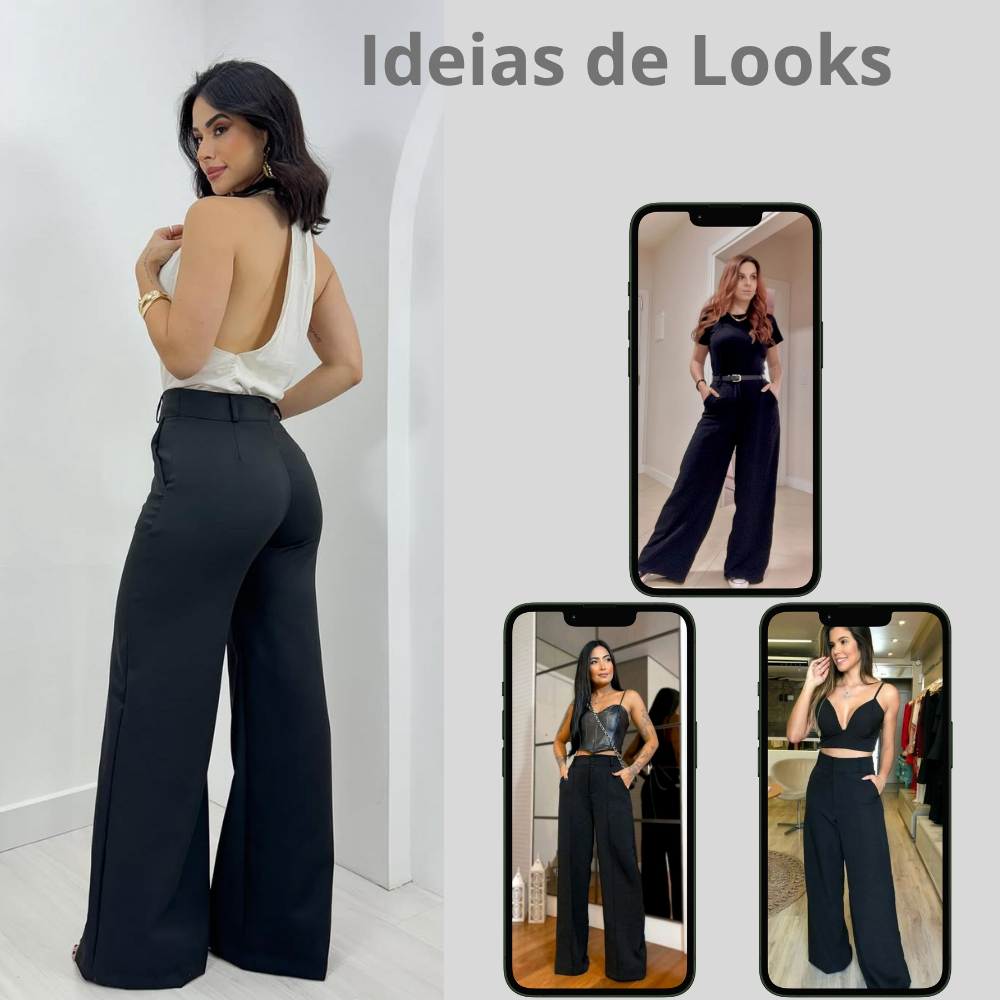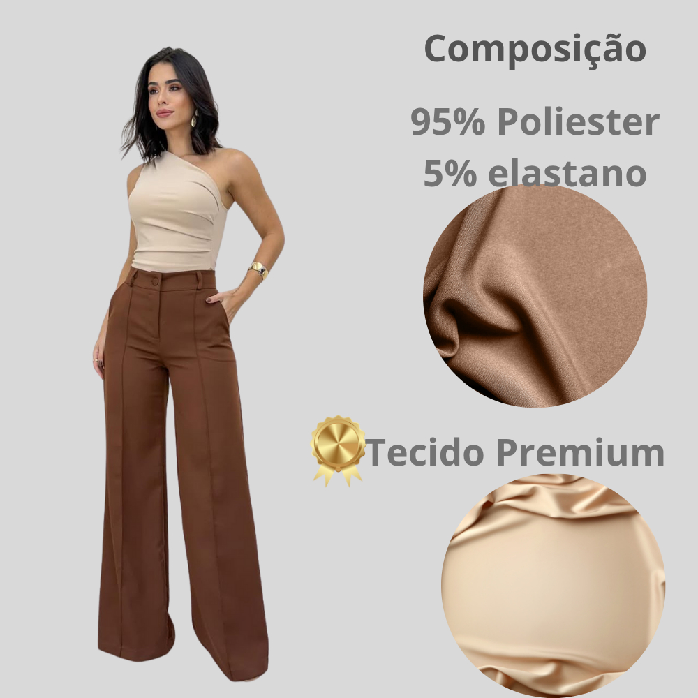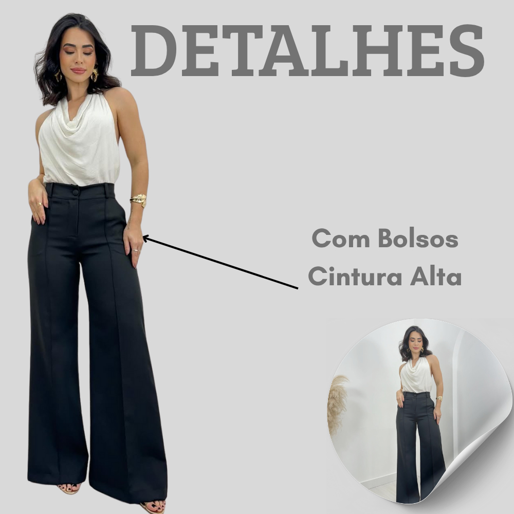 Calça Pantalona Alfaiataria Feminina Cintura Alta Social Premium