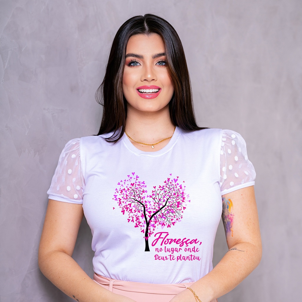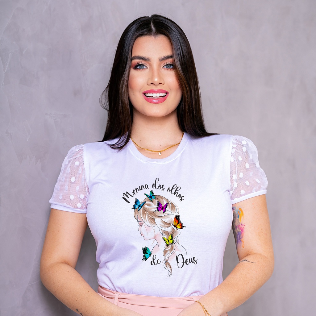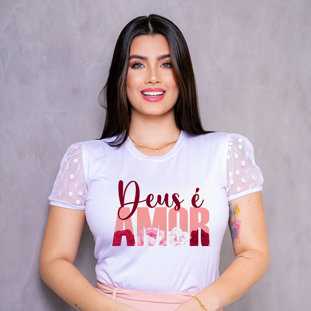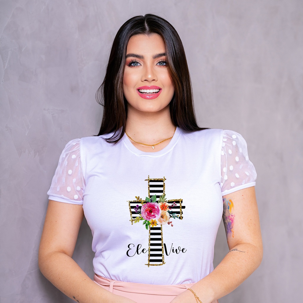 Blusa T-Shirt Manga de Tule - Cristã Evangélica
