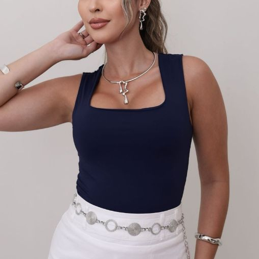 Body Feminino Regata Gola Redonda de Poliamida Confortável ate 44