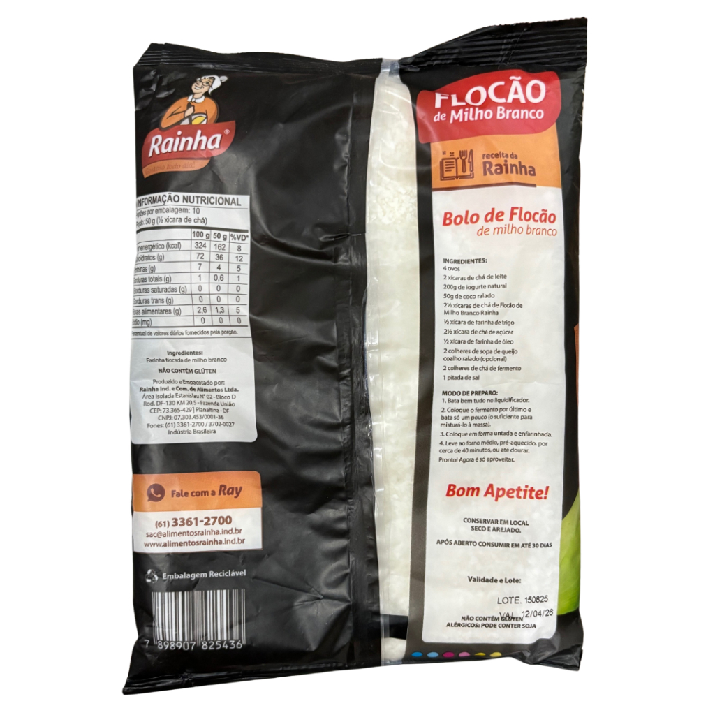 Flocão de Milho Branco Não-Transgênico Rainha 500g