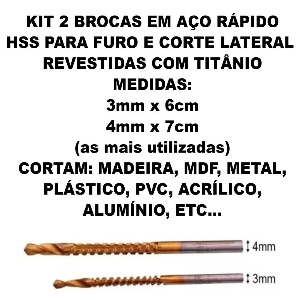 Kit 2x Broca Fura Fresa Tira Rebarba Aço Rápido 3 E 4mm