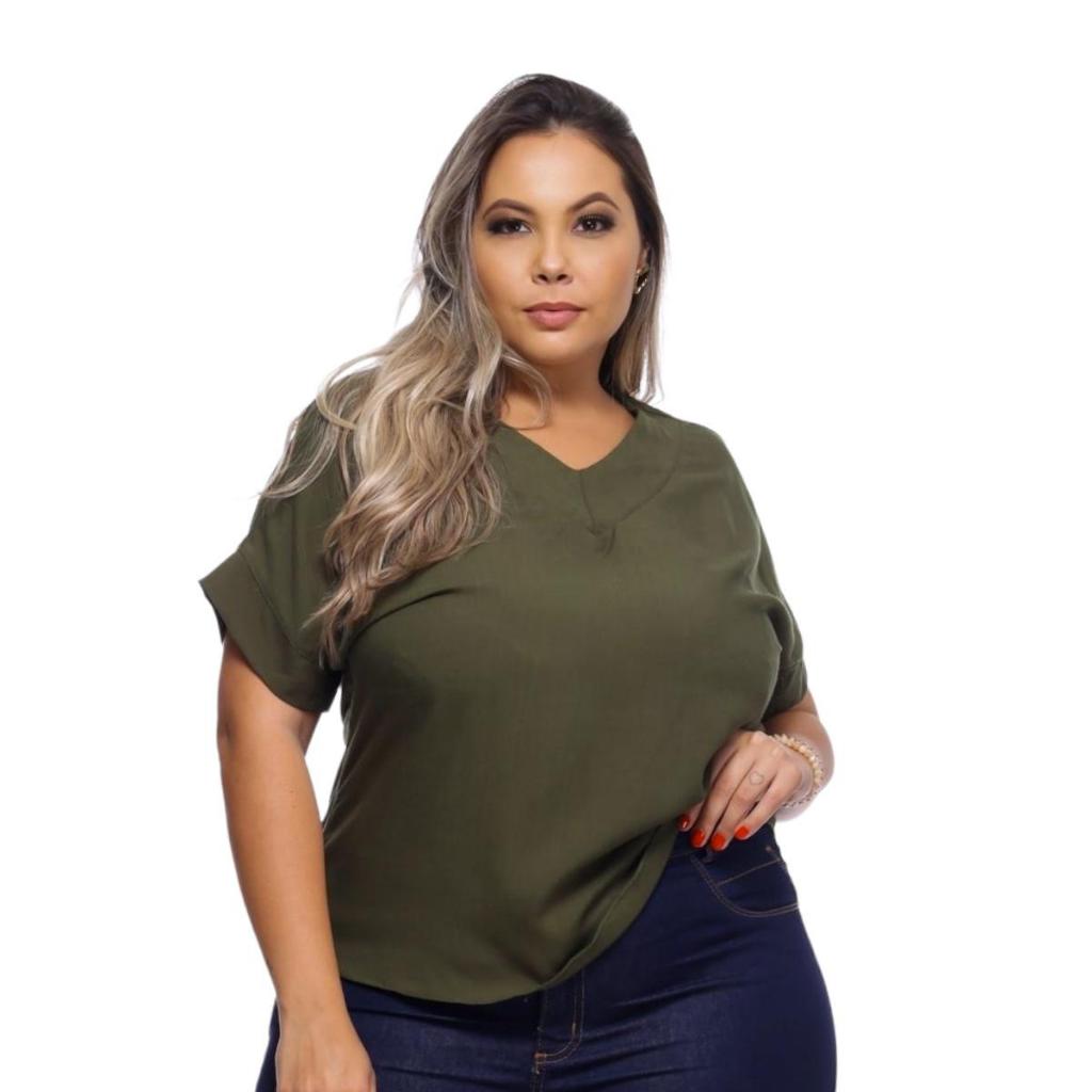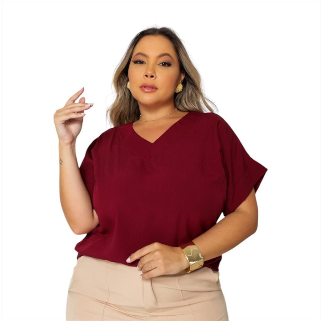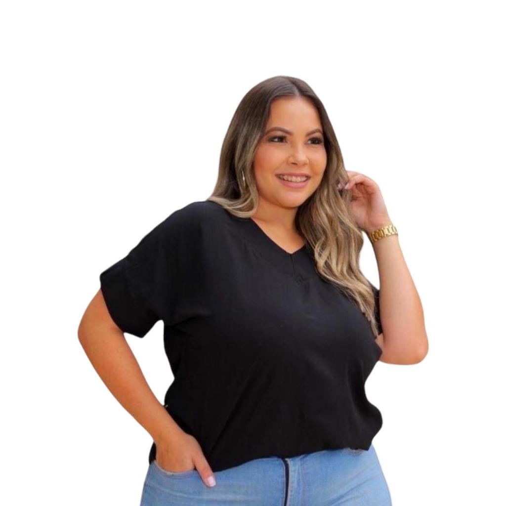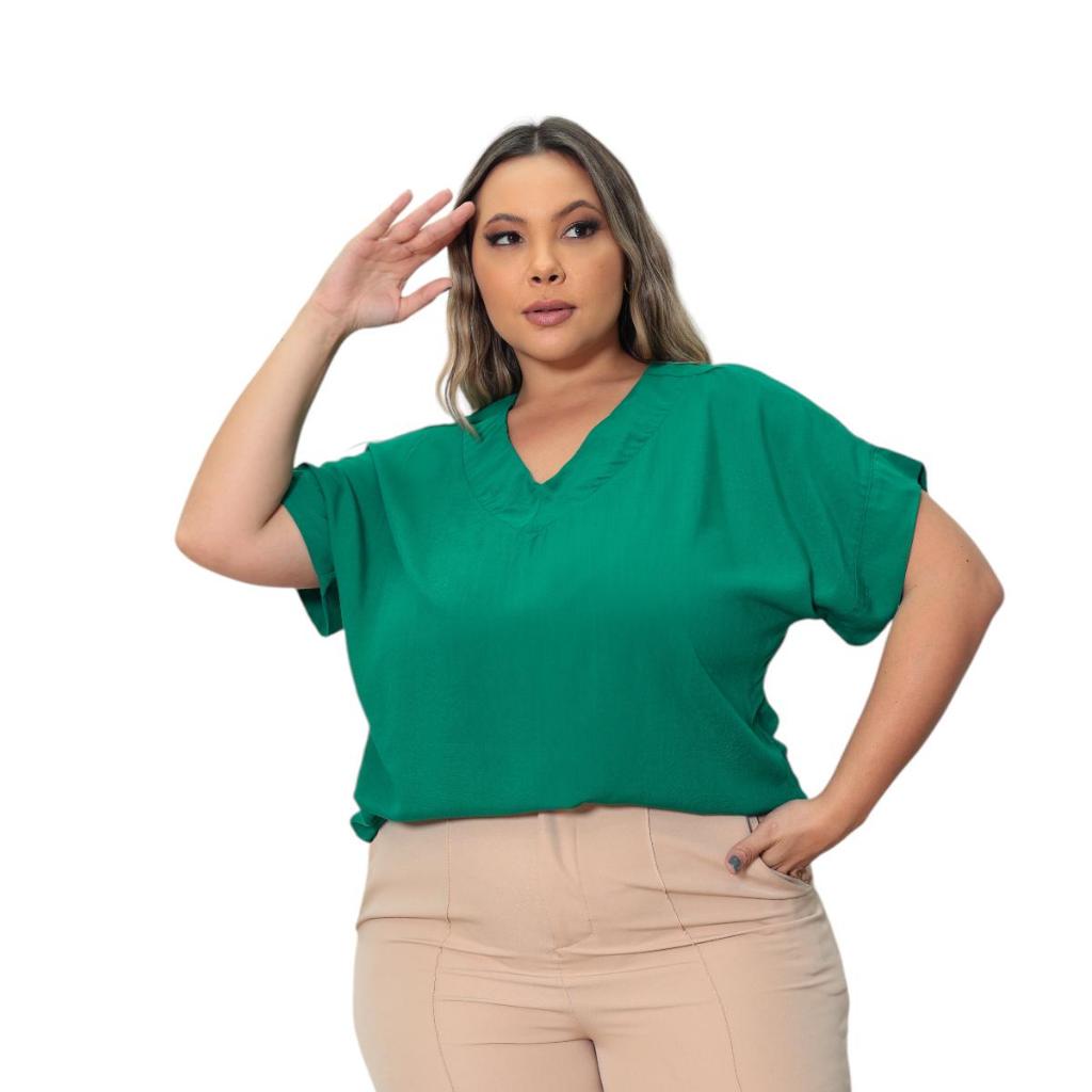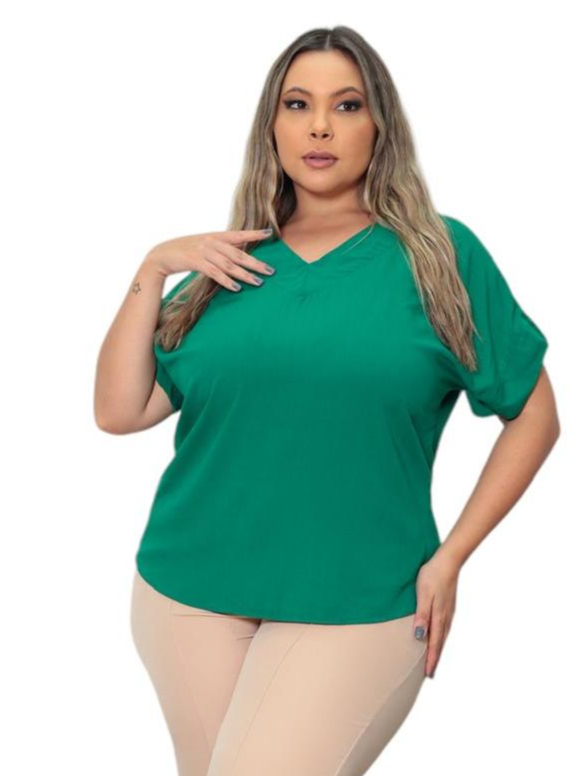 BLUSA PLUS SIZE ELEGANTE DECOTE V, EM VISCOLINHO
