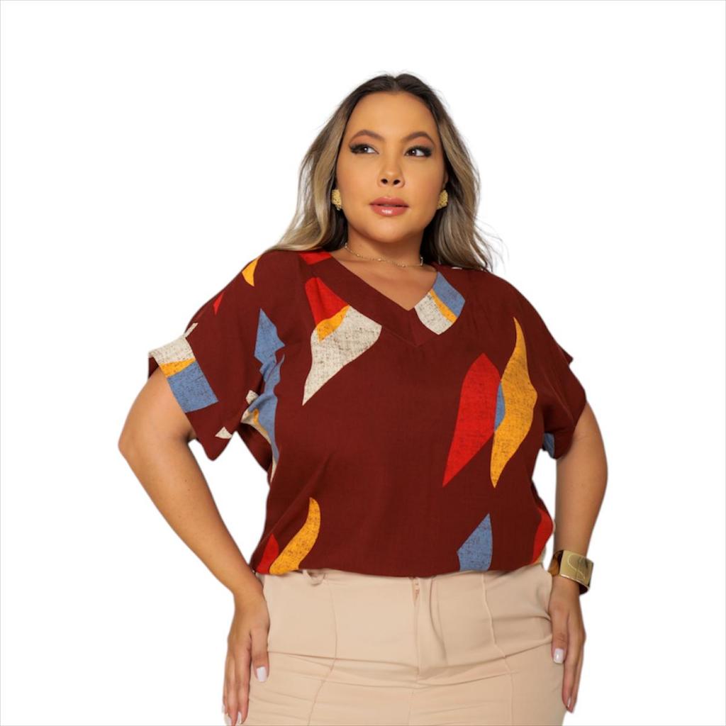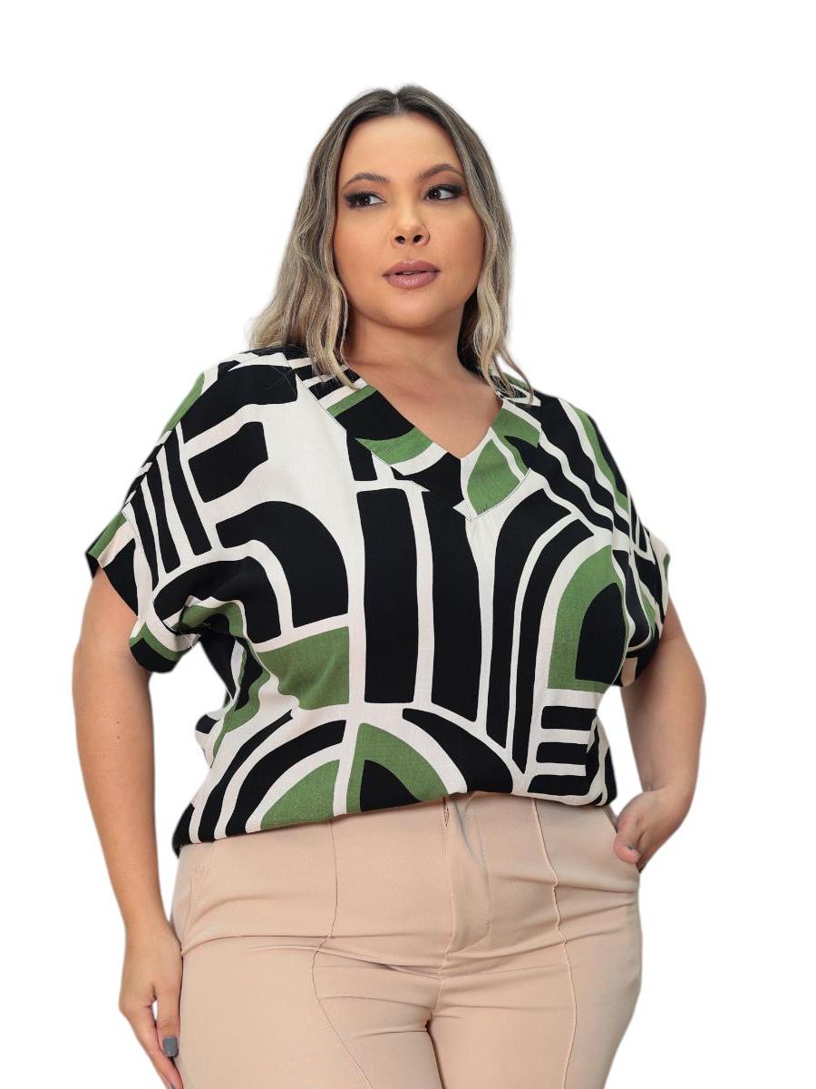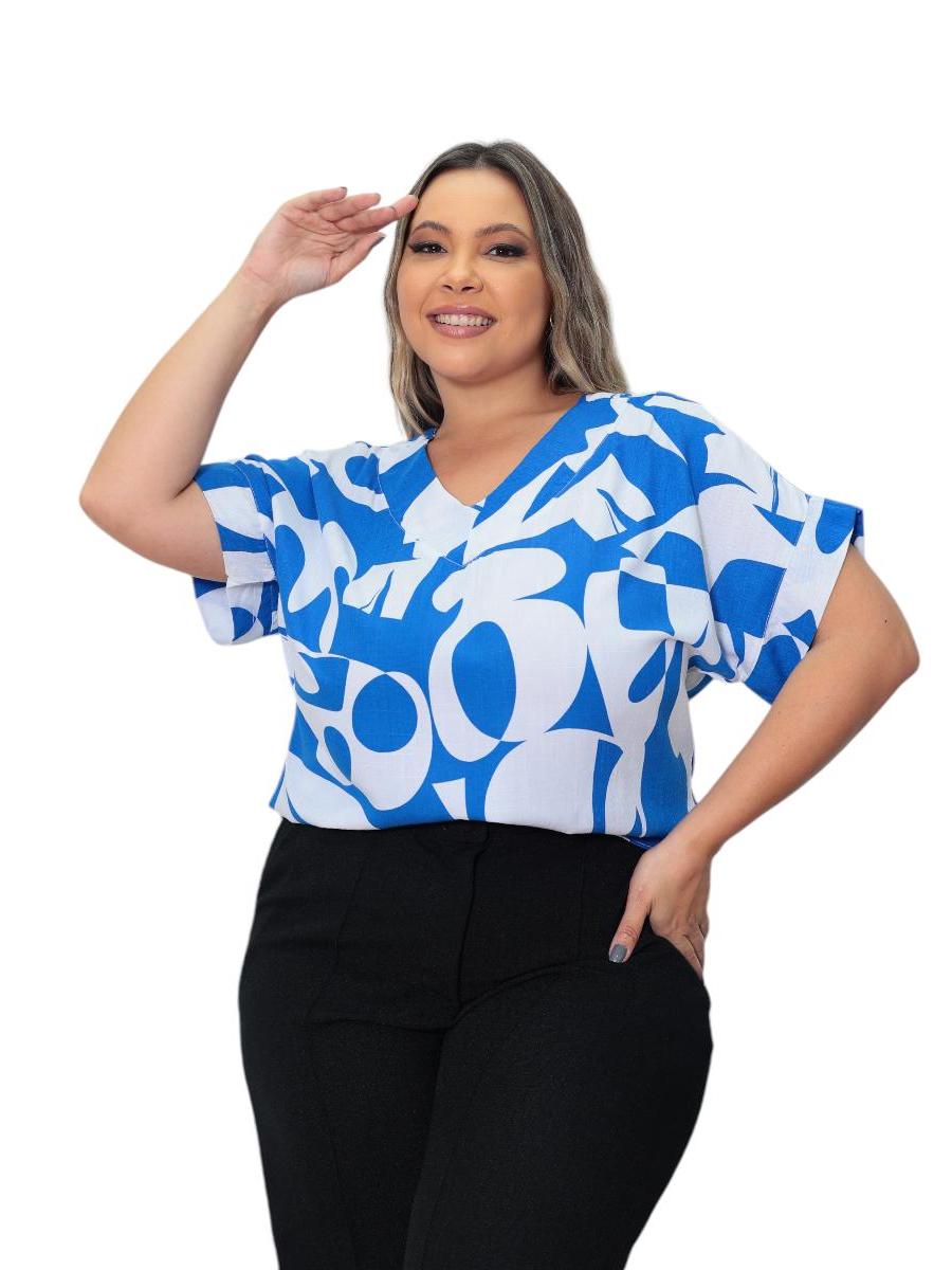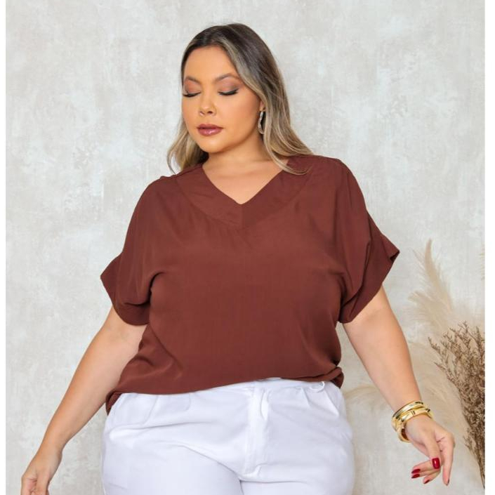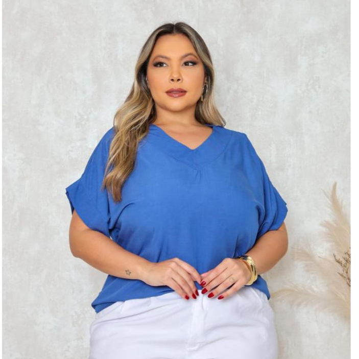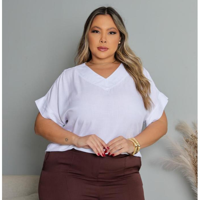 BLUSA PLUS SIZE ELEGANTE DECOTE V, EM VISCOLINHO