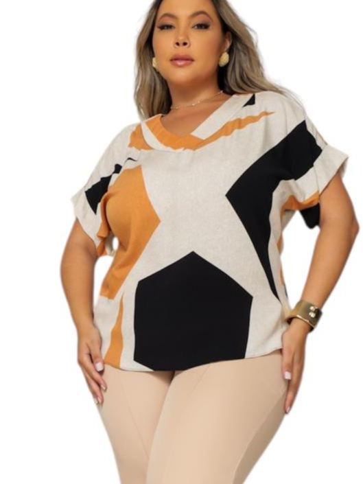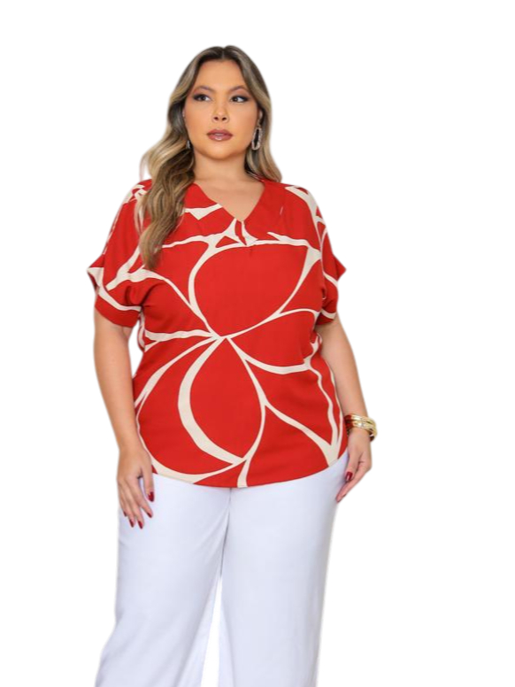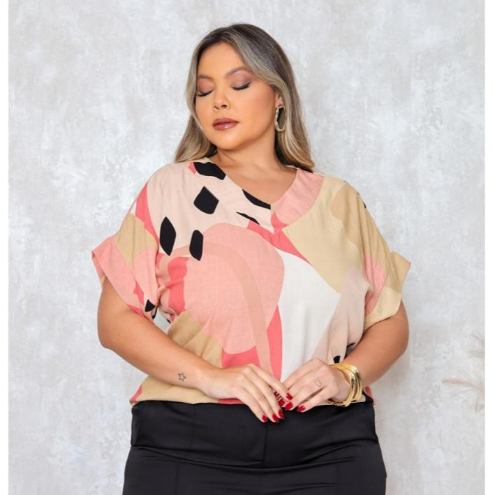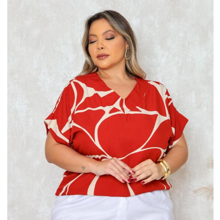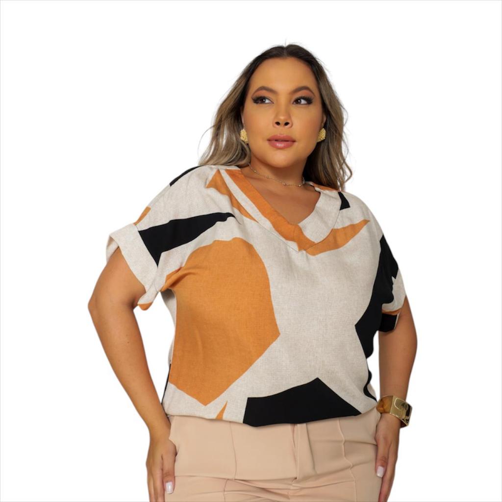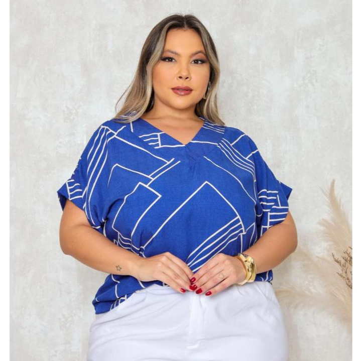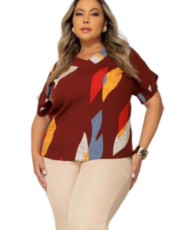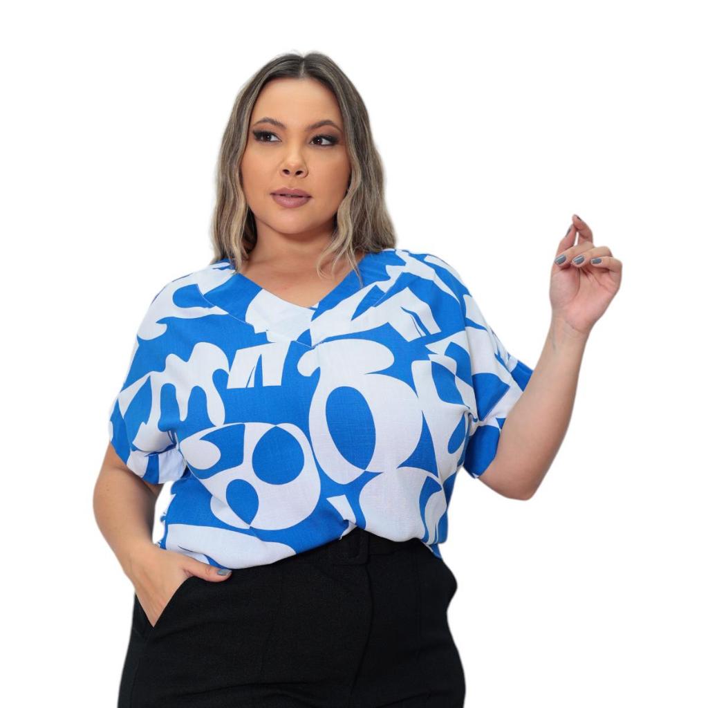 BLUSA PLUS SIZE ELEGANTE DECOTE V, EM VISCOLINHO